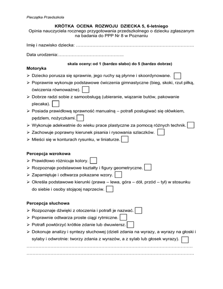 KRÓTKA OCENA ROZWOJU DZIECKA 5, 6