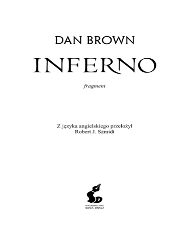 fragment Z języka angielskiego przełożył Robert J. Szmidt Najmroczniejsze czeluście piekieł zarezerwowane są dla tych, którzy zdecydowali się na neutralność w dobie kryzysu moralnego. FAKTY: Wszystkie dzieła sztuki, teksty literackie i naukowe oraz wszelkie odniesienia historyczne zawarte w tej książce są prawdziwe. „Konsorcjum” jest faktycznie istniejącą prywatną organizacją, która ma swoje przedstawicielstwa w siedmiu krajach świata. Jej nazwa została jednak zmieniona ze względów prawnych. Piekło to opisany w Boskiej komedii Dantego Alighieri podziemny świat o niespotykanie złożonej strukturze. Zamieszkują je istoty zwane cieniami – bezcielesne dusze uwięzione między życiem a śmiercią. PROLOG Jam jest Cieniem. Przez miasto utrapienia mknę. Drogą wiodącą w wiekuiste męki. Pozbawiony tchu gramolę się na brzeg rzeki Arno... potem skręcam w via dei Castellani i ruszam na północ, kuląc się w cieniu murów Galerii Uffizi. A oni wciąż mnie ścigają. Odgłos ich kroków jest coraz donośniejszy; teraz, gdy znaleźli już trop, nie odpuszczą. Ścigają mnie od wielu lat. Przez ich upór musiałem skryć się pod ziemią... zstąpić do czyśćca... ryć w gruncie jak odrażający robak. Jam jest Cieniem. Wyszedłszy na powierzchnię, zwracam spojrzenie ku północy, lecz nie umiem odnaleźć ścieżki zbawienia... albowiem Apeniny przesłaniają pierwszy blask świtu. Mijam palazzo z krenelażową wieżą i jednowskazówkowym zegarem... przemykam między rzadkimi o tej porze kupcami z piazza San Firenze, nawołującymi ochryple głosami pachnącymi wciąż lampredotto i pieczonymi oliwkami. Skręcam przed pałacem Bargello, by ruszyć ku zachodowi i wieży Badia – pod nią uderzam ciężarem całego ciała o kratę z kutego żelaza u podnóża schodów. Tu zabij w sobie wszelkie wahanie. 13 Naciskam klamkę i wstępuję w korytarz, z którego nie będzie już powrotu, o czym dobrze wiem. Zmuszam ołowiane stopy do pokonywania kolejnych wąskich stopni... wiodących ku niebu spiralą utkaną z miękkiej marmurowej przędzy, przetartej tu i ówdzie, porowatej. Z dołu dobiega echo głosów. Uderzają w błagalne tony. Są tuż za mną, zbliżają się nieustępliwie. Nie rozumieją tego, co nadejść musi... nie wiedzą, ilem dla nich uczynił! Cóż za niewdzięczna kraina! Im wyżej wchodzę, tym wyrazistsze stają się wizje... ciała lubieżnie wijące się w ognistym deszczu, żarłoczne dusze pławiące się w ekskrementach, zdradzieccy łajdacy w lodowatym uścisku Szatana. Pokonuję ostatnie stopnie i docieram w końcu na szczyt. Tam, chwiejąc się z wyczerpania, czuję na twarzy wilgotne powietrze poranka. Śpieszę w kierunku muru sięgającego mi do głowy, zerkając w otwory strzelnicze. W dole rozciąga się błogosławione miasto, które uczyniłem mym sanktuarium niedostępnym dla tych, co mnie wygnali. Znów słyszę głosy, blisko, tuż za plecami. – To, co uczyniłeś, było szalone! Szaleństwo rodzi szaleństwo. – Na litość boską – wołają – powiedz, gdzie to ukryłeś! Nie uczynię tego, właśnie z powodu boskiej litości! Stoję teraz, zagnany w kozi róg, przywarłszy do zimnego kamienia, a oni spoglądają głęboko w moje szczere zielone oczy i twarze im ciemnieją. Nie przymilają się już, lecz grożą. – Chyba wiesz, że mamy swoje sposoby. Potrafimy cię zmusić, abyś powiedział, gdzie to ukryłeś. 14 Właśnie dlatego wspiąłem się w pół drogi do Nieba. Odwracam się niespodziewanie, wyciągając ręce ku górze, chwytając palcami wąską półkę. Podciągam się, najpierw na kolana, potem na nogi... stoję, chwiejąc się nad przepaścią. Poprowadź mnie, Wergiliuszu, nad tą otchłanią. Rzucają się za mną, nie wierząc własnym oczom, chcą złapać moje stopy, lecz boją się, że jednym nieostrożnym ruchem strącą mnie w niebyt. Błagają teraz w desperacji, ale ja odwracam się do nich plecami. Wiem, co muszę uczynić. Pode mną, oszałamiająco daleko, morze czerwonych dachów pochłania sielski krajobraz niczym ogniste fale, rozświetlając płomieniami ziemię, po której stąpali ongiś giganci... Giotto, Donatello, Brunelleschi, Michał Anioł, Botticelli. Przesuwam się ku krawędzi. – Złaź! – wrzeszczą. – Jeszcze nie jest za późno! Żałośni ignoranci! Nie widzicie przyszłości? Nie dostrzegacie wielkości mego dzieła? Konieczności jego stworzenia? Z jakąż radością uczynię to ostateczne poświęcenie... z nim ostatecznie zgaśnie wasza nadzieja na odnalezienie tego, czego tak pożądacie. Nie zdążycie! Znajdujący się dziesiątki metrów niżej wyłożony kamieniem plac przyzywa mnie niczym oaza spokoju. Ależ chciałbym opóźnić ten moment... wszakże czas jest jedynym, czego los mi poskąpił. W ostatnich sekundach znów patrzę na plac w dole i dostrzegam na nim coś, co mnie zaskakuje. Twoją twarz. Patrzysz na mnie z cienia. Spojrzenie masz smutne, ale wyczuwam w nim szacunek dla tego, co osiągnąłem. Ro15 zumiesz, że nie pozostawiono mi wyboru. Z miłości do Człowieka muszę chronić swoje dzieło. Ono wciąż rośnie... czekając... połyskując w krwistych wodach laguny, w której nie przejrzały się gwiazdy. Odrywam wzrok od twych oczu, by spojrzeć na horyzont. Wysoko nad uciemiężonym światem zanoszę ostatnie błaganie. Najdroższy Boże, spraw, aby świat zapamiętał mnie nie jako potwornego grzesznika, lecz szlachetnego zbawcę, którym zaiste jestem. Spraw, aby ludzkość zrozumiała, czym jest dar, który jej zostawiam. Mój dar jest przyszłością. Mój dar jest zbawieniem. Mój dar jest piekłem. Potem szeptam słowo amen... i czynię ostatni krok, prosto w przepaść. Rozdział 1 Wspomnienia materializowały się powoli... jak bąbelki powietrza wypływające z mroku bezdennej studni. Kobieta z twarzą zasłoniętą welonem. Robert Langdon przyglądał się jej przez koryto rzeki, której spienione wody czerwien