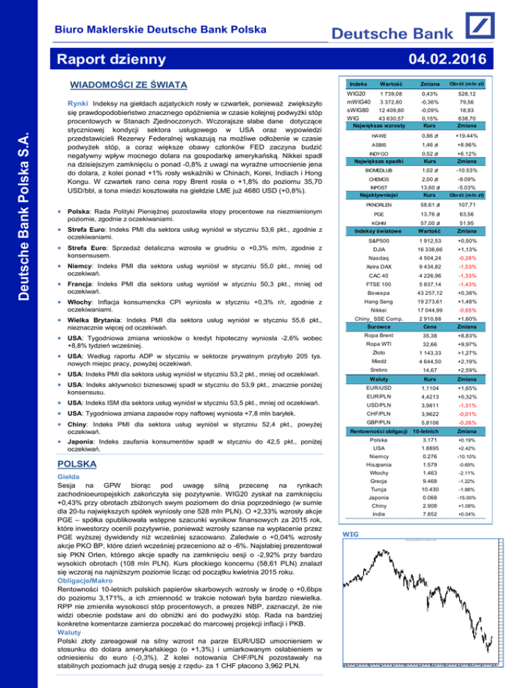 Raport dzienny - Biuro Maklerskie Deutsche Bank Polska