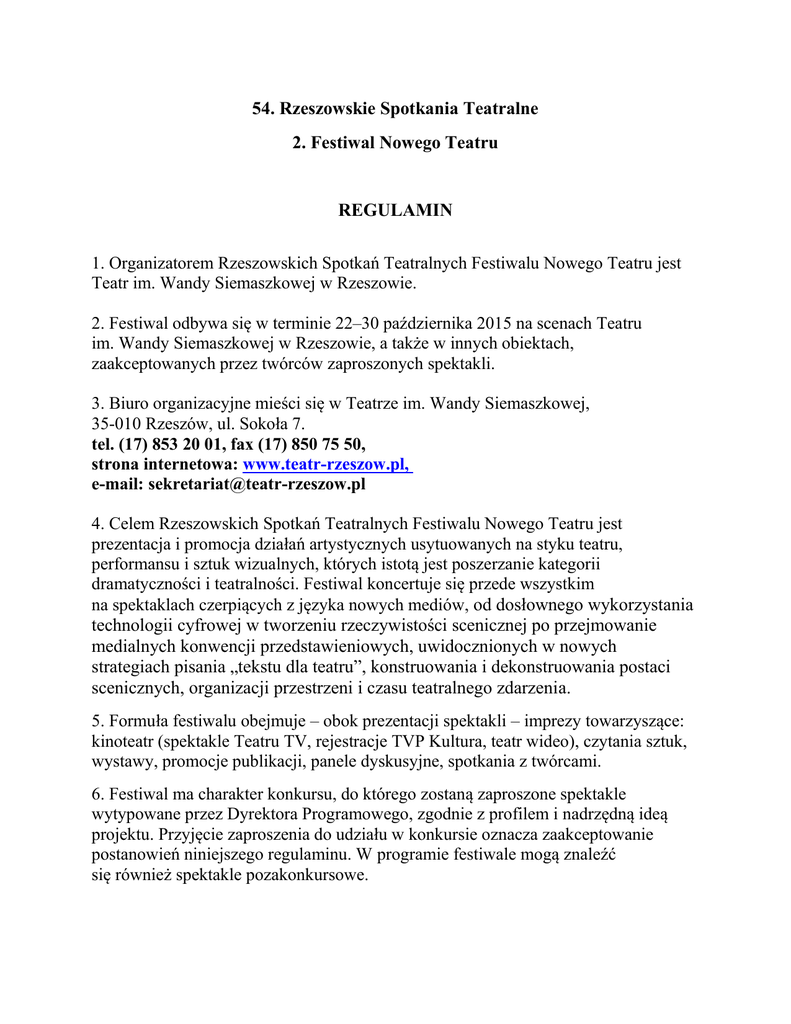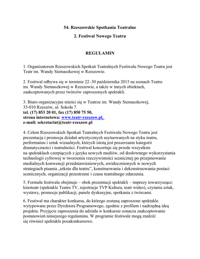 Regulamin Festiwalu 2015 - Teatr im. Wandy Siemaszkowej w