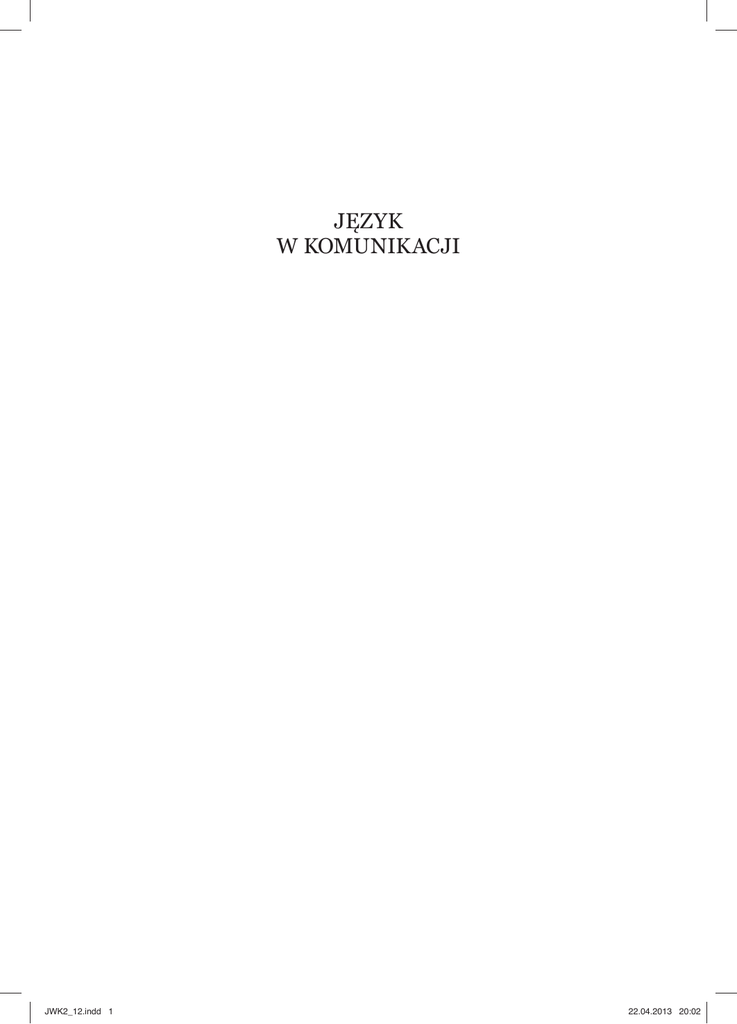 JĘZYK W KOMUNIKACJI JWK2_12.indd 1 22.04.2013 20:02 RADA NAUKOWA Feliks PLUTA (przewodniczący) Andrzej DYSZAK, Uniwersytet Kazimierza Wielkiego w Bydgoszczy Edita KOMINARECOVA, Uniwersytet Preszowski w Preszowie Grzegorz MAJKOWSKI, Akademia im. Jana Długosza w Częstochowie Halina PELCOWA, Uniwersytet Marii Curie-Skłodowskiej w Lublinie Paweł PŁUSA, Akademia im. Jana Długosza w Częstochowie Józef PORAYSKI-POMSTA, Uniwersytet Warszawski Małgorzata ŚWIĘCICKA, Uniwersytet Kazimierza Wielkiego w Bydgoszczy Slávka TOMAŠČIKOVÁ, Uniwersytet Pavla Jozefa Šafárika w Koszycach Zenon WEIGT, Uniwersytet Łódzki LISTA RECENZENTÓW Elżbieta AWRAMIUK, Uniwersytet w Białymstoku Leszek BEDNARCZUK Edward BREZA Maria CZAPLICKA-JEDLIKOWSKA, Uniwersytet Kazimierza Wielkiego w Bydgoszczy Sławomir GALA, Uniwersytet Łódzki Anna KRUPSKA-PEREK, Akademia Humanistyczno-Ekonomiczna w Łodzi Feliks PLUTA Slávka TOMAŠČIKOVÁ, Uniwersytet Pavla Jozefa Šafárika w Koszycach Paul WILSON, Uniwersytet Łódzki Nadesłane do redakcji artykuły są oceniane anonimowo przez dwóch Recenzentów JWK2_12.indd 2 22.04.2013 20:02 JĘZYK W KOMUNIKACJI Nr 2 Częstochowa 2012 JWK2_12.indd 3 22.04.2013 20:02 Redaktor naczelny Grzegorz MAJKOWSKI Redaktorzy tematyczni Małgorzata IŻYKOWSKA Justyna MAKOWSKA Redaktor językowy Aneta MAJKOWSKA Redaktor statystyczny Paulina UCIEKLAK-JEŻ Przygotowanie streszczeń (j. angielski) Zbigniew KOPEĆ Redaktor naczelny wydawnictwa Andrzej MISZCZAK Korekta, skład i łamanie Studio Graficzne Piotr KURASIAK Projekt okładki Sławomir SADOWSKI PISMO RECENZOWANE Podstawową wersją periodyku jest publikacja książkowa © Copyright by Akademia im. Jana Długosza w Częstochowie Częstochowa 2012 ISSN 2084-5111 Wydawnictwo im. Stanisława Podobińskiego Akademii im. Jana Długosza w Częstochowie 42-200 Częstochowa, ul. Waszyngtona 4/8 tel. 34 378-43-29, faks 34 378-43-19 www.ajd.czest.pl; e-mail: [email protected] JWK2_12.indd 4 22.04.2013 20:02 Spis treści Wstęp ...........................................................................................................................9 I Studia i rozprawy Edward Breza, Epitety NMP w „Hymnach kościelnych” ........................................15 Judyta Kabus, Analiza dyskursu w naukach humanistycznych ...............................35 Marta Wybraniec, Tekst libretta a komunikat spektaklu baletowego ....................51 Olga Ziopaja, Środki werbalnej ekspresji a język ciała – taniec współczesny jako medium emocji .........................................................61 Ewa Zielińska, Wskaźniki zespolenia w zdaniu pojedynczym w gwarach kociewskich ......................................................................................67 Justyna Makowska, Relacje płci w etnokulturze Podhala na przykładzie utworów gwarowych autorstwa Jana Gutta-Mostowego...................................79 Jolanta Kasperek, Stylizacja językowa na polszczyznę Żydów w utworze Karola Miarki „Mosiek spekulant” ................................................103 Ilona Stasiołek, Językowy obraz zmagań pisarskich Teodora Parnickiego na podstawie „Dzienników z lat osiemdziesiątych” ........................................ 111 Karolina Ditrych, Teaching Communications skills during an English lesson ................................................................................... 119 JWK2_12.indd 5 22.04.2013 20:02 Michał Garncarek, Polski język migowy w nauczaniu osób słyszących. Wskazówki metodyczne .....................................................................................129 II Recenzje i omówienia Bartosz Woźniak (recenzja): A. Majkowska, G. Majkowski, Źródła do dziejów języka polskiego w rękopiśmiennych zbiorach Jasnej Góry, WCM, Warszawa – Opole 2011, ss. 129 ...........................................................143 Grzegorz Majkowski (recenzja): J. Kuć, Antroponimia pogranicza podlasko-mazowieckiego (na podstawie XVII-wiecznych ksiąg parafialnych z Mokobód), Wydawnictwo Uniwersytetu Przyrodniczo-Humanistycznego w Siedlcach, Siedlce 2011, ss. 283.....................................149 III Kronika Aneta Majkowska, Sprawozdanie z IX Międzyuczelnianej Studenckiej Konferencji Naukowej Język – Teatr – Literatura, Częstochowa, 7–8 maja 2012 roku. (Sekcja B. Językoznawstwo) ....................159 Informacje dla Autorów ..........................................................................................163 JWK2_12.indd 6 22.04.2013 20:02 TABLE OF CONTENTS Introduction ................................................................................................................9 I Studies and dissertations Edward Breza, Epithets NMP in „Hymny kościelne”..............................................15 Judyta Kabus, The analysis of the discourse in humanities ....................................35 Marta Wybraniec, The text of the libretto and the communication of the ballet-spectacle .........................................................................................51 Olga Ziopaja, Measures of the verbal expression and the body language – the modern dance as the medium of the emotion ............................................61 Ewa Zielińska, Indicators of the junction in the single sentence in dialects Kociewia ............................................................................................67 Justyna Makowska, Relations between the sexes in Polish Highlanders ethnoculture in dramas written by Jan Gutt-Mostowy ......................................79 Jolanta Kasperek, The lingual stylization on Polish of Jews in the composition of Karol Miarka „Mosiek spekulant” ................................103 Ilona Stasiołek, The lingual picture of strugglings writer’s Theodor Parnicki on the basis „Journals from the eighties” .......................... 111 Karolina Ditrych, Teaching Communications skills during an English lesson .