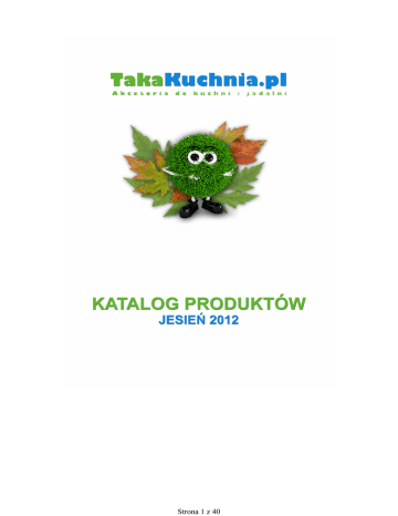 Strona 1 z 40 GOTOWANIE I PIECZENIE CZAJNIKI ZDJĘCIE ID NAZWA OPIS CENA NETTO CENA BRUTTO WIĘCEJ SZCZEGÓŁÓW 83 Czajnik stalowy Bright 3L 69001 Vinzer Ładny i funkcjonalny czajnik to podstawa wyposażenia każdej kuchni. Idealnie komponuje się z nowoczesnym jak i tradycyjnym kuchennym wystrojem. Nalanie wody do czajnika ułatwia specjalnie do tego przystosowany otwór. Przepiękna kompozycja polerowanej na połysk stali szlachetnej z drewnem. Pojemność 3l. 113.01 zł 139 zł http://takakuchnia.pl/83czajnik.html 170 Wykonany z tworzywa - stal polerowana chromowo - niklowa 18/10 FERRINOX. Materiał ten przyspiesza proces gotowania od 10 do 15%. Czajnik SYMPHONIA Gwizdek na stałe zintegrowany jest z czajnikiem, Vinzer 2,8 L 69003 który posiada również nienagrzewający się, bakelitowy uchwyt. Dno podwójne gromadzi ciepło dzięki czemu dno i ściany nagrzewają się w sposób równomierny. Poj. 2,8l. 160.98 zł 198 zł http://takakuchnia.pl/170-czajniksymphonia.html Czajnik z polerowanej na połysk stali nierdzewnej firmy Tadar charakteryzuje się popularnym wzornictwem, dzięki temu jest uniwersalny i pasuje do każdej kuchni. Posiada bakelitową ruchomą rączkę w kolorze czarnym i pojedyncze dno. Czajnik jest przystosowany do gotowania na kuchenkach gazowych, kuchenkach ceramicznych oraz elektrycznych. 16.18 zł 19.9 zł http://takakuchnia.pl/477-czajniktadar-economic-classic-2l.html Czajnik Piramida to wygoda użytkowania i ładny, uniwersalny design. Praktyczny w użyciu dzięki łamanej rączce. Uchwyty wolno łapią ciepło unoszące się nad czajnikiem dzięki temu, że są osadzone wysoko. W tym czajniku za sprawą 3warstwowego dna z aluminiowym wkładem w mig zagotujesz wodę. Do gotowania na kuchenkach: gazowych, indukcyjnych, ceramicznych, elektrycznych. 20.24 zł 24.9 zł http://takakuchnia.pl/481-czajniktadar-piramida-2l.html OPIS CENA NETTO CENA BRUTTO WIĘCEJ SZCZEGÓŁÓW Czajnik Tadar 477 Economic Classic 2L Czajnik Tadar 481 Piramida 2L stal nierdzewna GOTOWANIE I PIECZENIE FONDUE ZDJĘCIE ID NAZWA 393 Zestaw do czekoladowego fondue to wspaniały pomysł na wesołe spędzenie czasu z przyjaciółmi w zimowe wieczory. Dodatki można przygotować wg własnych upodobań, sprawdzą się tu Fondue do czekolady doskonale ciasteczka, rurki, truskawki czy melon a zimą można wykorzystać inne sezonowe owoce, np. mandarynki lub ananasa z puszki. Fondue wykonane jest z ceramiki co świadczy o jego uniwersalności i funkcjonalności. 26.75 zł 32.9 zł http://takakuchnia.pl/393-fonduedo-czekolady.html 489 Eleganckie fondue odpowiednie zarówno do czekoladowych jak i serowych sosów. Dzięki niemu zobaczycie jak zrobić płynną czekoladę w Fondue do czekolady której będziecie mogli zatapiać owoce. Świetny Choco pomysł na deser i niezłą zabawę. To doskonałe urozmaicenie małych przyjęć jak i kolacji we dwoje. 21.06 zł 25.9 zł http://takakuchnia.pl/489-fonduedo-czekolady-choco.html 490 Eleganckie fondue odpowiednie zarówno do czekoladowych jak i serowych sosów. W zestawie znajdują się dwa widelczyki do nabijania owoców, Fondue do czekolady warzyw i wszystkich innych rzeczy, które można White zanurzyć w przygotowanym fondue. Dzięki temu niezwykłemu ceramicznemu zestawowi przygotowanie czekoladowego fondue jest nie tylko łatwe ale i przyjemne. 21.06 zł 25.9 zł http://takakuchnia.pl/490-fonduedo-czekolady-white.html Strona 2 z 40 GOTOWANIE I PIECZENIE FONDUE ZDJĘCIE ID NAZWA OPIS CENA NETTO CENA BRUTTO WIĘCEJ SZCZEGÓŁÓW Zestaw do fondue 11el. firmy VINZER wykonany ze stali szlachetnej, pozwala cieszyć się wspólnym przyrządzaniem potraw, zarówno wytrawnych (z sera, mięsa, warzyw), jak i słodkich deserów. Zapewni niezapomniane chwile podczas spotkań towarzyskich. Nowoczesny design. Doskonały produkt, łatwy w utrzymaniu czystości. Średnica 15cm. 234.15 zł 288 zł http://takakuchnia.pl/166-fonduevinzer-11-el.html Zestaw do czekoladowego fondue to wspaniały pomysł na wesołe spędzenie czasu z przyjaciółmi. Zaskocz ich, serwujac owoce, które można zatopić w prawdziwej czekoladzie. Fondue wykonane jest z ceramiki, dzięki temu jest uniwersalne i funkcjonalne. 26.75 zł 32.9 zł http://takakuchnia.pl/458-fonduedo-czekolady.html NAZWA OPIS CENA NETTO CENA BRUTTO WIĘCEJ SZCZEGÓŁÓW Foremka serduszko Przepyszne ciasteczka w kształcie serduszek zachwycą wszystkich gości oraz sprawią radość każdemu dziecku i nie tylko. Idealna do wszelkiego rodzaju wypieków. Wyraź swoje uczucia, upiecz dowolne ciasto w praktycznej, nietuzinkowej formie w kształcie serca! Szerokość 14 cm, wysokość 4,5cm. 3.41 zł 4.2 zł http://takakuchnia.pl/43-foremkaserduszko.html Komplet 3 szt średnich foremek do wypiekania Foremki do babeczek wspaniałych i smacznych babeczek lub tartaletek. Upieczesz w nich również muffiny - wszystko zależy od Twojej fantazji! 3.9 zł 4.8 zł http://takakuchnia.pl/460-foremkido-babeczek-3-szt.html Foremki w sześciu różnych kształtach: kwiatek, serce, gwiazdka, miś, hipopotam, słonik. Przeznaczone do wycinania kształtów w cieście, Foremki do wycinania pieczywie itp. Wspaniały pomysł na pyszny deser, ciastek podwieczorek dla dzieci. Pieczenie stanie się wspaniałą i przyszną zabawą, która wciągnie w świat kulinarny całą rodzinę! 5.69 zł 5.25 zł http://takakuchnia.pl/221-foremkido-wycinania-ciastek.html Pieczenie to wspaniała zabawa, a domowe wypieki są o wiele smaczniejsze i zdrowsze od gotowych słodyczy pełnych konserwantów. Aby upiec idealne babeczki, muffinki wystarczy własny przepis oraz nasza wspaniała foremka. Polecamy również białe papilotki oraz ze wzorkami: jagody i wisienki. 20.24 zł 24.9 zł http://takakuchnia.pl/467-formateflonowa-do-pieczenia-12muffinek-.html Wysokiej jakości forma o wymiarach 25cm x 5,5cm w kształcie serca do wszelkich ciast i wypieków. Produkt nadaje się do pieczenia "w" i "na" kuchenkach. Dzięki powłoce nieprzywieralnego teflonu bez trud