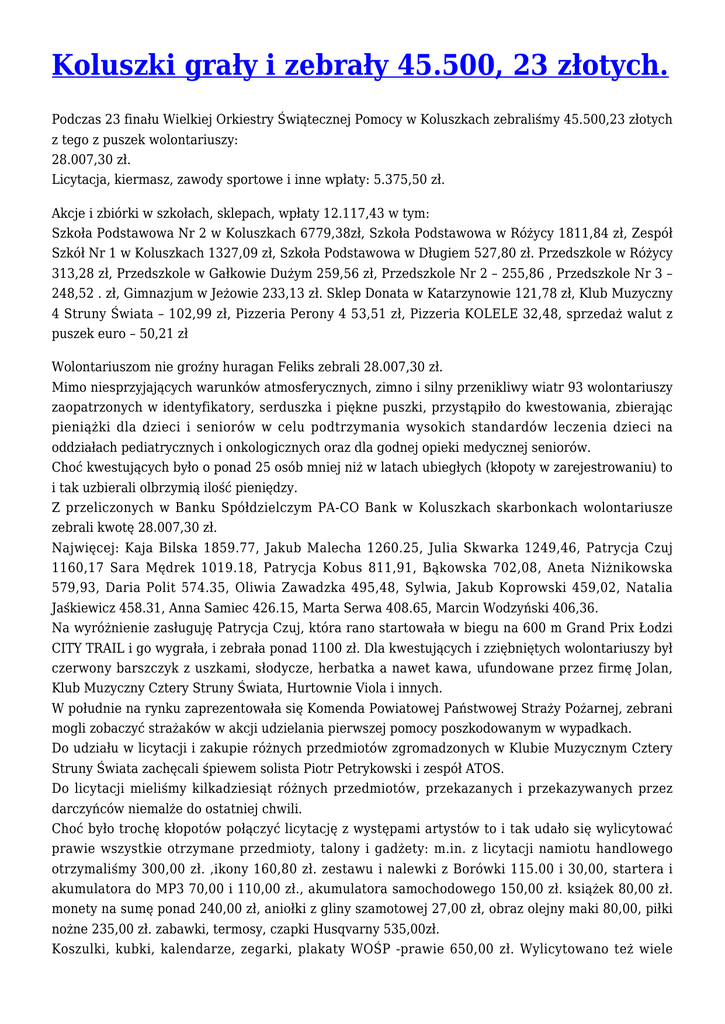 Koluszki grały i zebrały 45.500, 23 złotych.