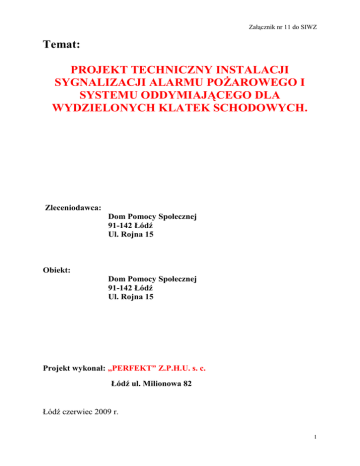 PROJEKT TECHNICZNY INSTALACJI SYGNALIZACJI ALARMU