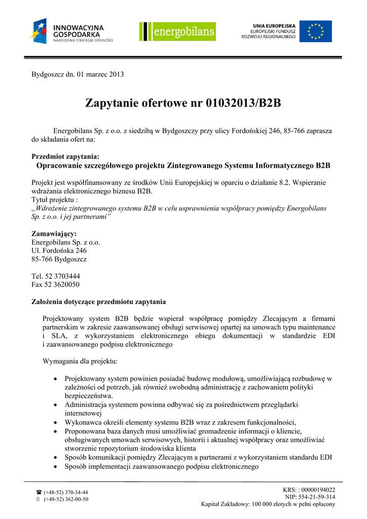 Zapytanie ofertowe nr 01032013/B2B