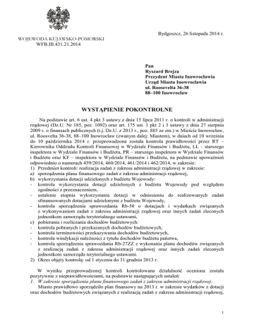 Wystąpienie pokontrolne - bip.bydgoszcz.uw.gov.pl