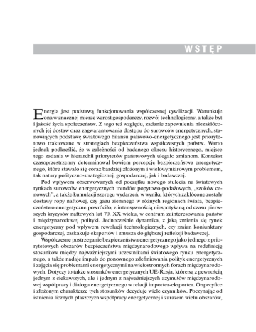 WSTĘP E nergia jest podstawą funkcjonowania współczesnej cywilizacji. Warunkuje ona w znacznej mierze wzrost gospodarczy, rozwój technologiczny, a także byt i jakość życia społeczeństw. Z tego też względu, zadanie zapewnienia niezakłóconych jej dostaw oraz zagwarantowania dostępu do surowców energetycznych, stanowiących podstawę światowego bilansu paliwowo-energetycznego jest priorytetowo traktowane w strategiach bezpieczeństwa współczesnych państw. Warto jednak podkreślić, że w zależności od badanego okresu historycznego, miejsce tego zadania w hierarchii priorytetów państwowych ulegało zmianom. Kontekst czasoprzestrzenny determinował bowiem percepcję bezpieczeństwa energetycznego, które stawało się coraz bardziej złożonym i wielowymiarowym problemem, tak natury polityczno-strategicznej, gospodarczej, jak i badawczej. Pod wpływem obserwowanych od początku nowego stulecia na światowych rynkach surowców energetycznych trendów popytowo-podażowych, „szoków cenowych”, a także kumulacji szeregu wydarzeń, w wyniku których zakłócone zostały dostawy ropy naftowej, czy gazu ziemnego w różnych regionach świata, bezpieczeństwo energetyczne powróciło, z intensywnością niespotykaną od czasu pierwszych kryzysów naftowych lat 70. XX wieku, w centrum zainteresowania państw i międzynarodowej polityki. Jednocześnie dynamika, z jaką zmienia się rynek energetyczny pod wpływem rewolucji technologicznych, czy zmian koniunktury gospodarczej, zaskakuje ekspertów i zmusza do głębszej refleksji badawczej. Współczesne postrzeganie bezpieczeństwa energetycznego jako jednego z priorytetowych obszarów bezpieczeństwa międzynarodowego wpływa na redefinicję stosunków między najważniejszymi uczestnikami światowego rynku energetycznego, a także nadaje impuls do ponownego zdefiniowania polityk energetycznych i zajęcia się problemami energetycznymi na wielostronnych forach międzynarodowych. Dotyczy to także stosunków energetycznych UE-Rosja, które są z pewnością jednym z ciekawszych, ale i jednym z najważniejszych azymutów międzynarodowej współpracy i dialogu energetycznego w relacji importer-eksporter. O specyfice i złożonym charakterze tych stosunków decyduje wiele czynników. Poczynając od istnienia licznych płaszczyzn współpracy energetycznej i zarazem wielu obszarów, 12 W s t ę p w których interesy Rosji i UE wyraźnie ze sobą kolidują, przez niejasne relacje między bilateralnym a multilateralnym kształtowaniem współpracy z Rosją przez kraje UE, i wykorzystywanie tej wewnętrznej niespójności UE przez Rosję, po kształtującą się od lat 90. współzależność w obszarze bezpieczeństwa energetycznego między obu stronami. Co więcej, na rozwój współpracy energetycznej ogromny wpływ wywierają czynniki o charakterze politycznym, ekonomicznym, ale i geostrategicznym, mające swe źródło zarówno w samej Rosji i UE, jak i poza nimi. Zaostrzająca się rywalizacja o surowce energetyczne na światowych rynkach, w regionie Morza Kaspijskiego, czy zmiana struktury międzynarodowego rynku ropy naftowej i gazu ziemnego znajdują zatem również swe odzwierciedlenie w kształcie rosyjsko-unijnych stosunków. Zarówno kraje członkowskie UE z Europy Zachodniej, jak i Europy Środkowo-Wschodniej i Południowo-Wschodniej mają bogate tradycje współpracy z Rosją w sferze energetycznej, choć o zupełnie innym charakterze. Zaangażowanie tych pierwszych w rosyjskim sektorze naftowym sięga jeszcze XIX wieku, czyli początków rozwoju tego sektora. Dla członków UE z Europy Środkowo-Wschodniej i Południowo-Wschodniej handel surowcami energetycznymi rozwijany z ZSRR w ramach bloku wschodniego pozostawił do dzisiaj swój ślad w postaci silnego uzależnienia tych krajów od rosyjskich surowców i tras ich transportu. To samo, w jeszcze większej mierze dotyczy trzech republik bałtyckich, które będąc częścią składową imperium radzieckiego do dzisiaj funkcjonują jako „energetyczne wyspy” UE. Tak jak różne są doświadczenia współpracy z Rosją krajów UE i jak różny jest poziom ich uzależnienia importowego od rosyjskiej ropy naftowej i gazu ziemnego, tak odmienne są wizje bezpieczeństwa energetycznego realizowane przez te państwa w kontekście stosunków z tym jednym z najważniejszych światowych producentów surowców energetycznych. Tym też trudniejsze jest dla UE wypracowanie jednej, wspólnej koncepcji polityki energetycznej wobec Rosji i mówienie „jednym głosem” w stosunkach energetycznych z tym krajem. Unia Europejska jest dziś jednym z największych światowych konsumentów energii, a Rosja ze swoim ogromnym potencjałem surowcowym jest dla niej jednym z najbliższych geograficznie i najtańszych źródeł dostaw węglowodorów. Obserwowany w krajach unijnych trend wzrostu zapotrzebowania na importowane surowce energetyczne, który wpływa na wzrost powiązań handlowych z Rosją, niesie poważne implikacje dla bezpieczeństwa energetycznego. Ukształtowana zależność gospodarek krajów członkowskich UE od ropy naftowej i gazu ziemnego oraz zwiększająca się ich zależność importowa sprawia, że Unia staje się coraz bardziej wrażliwa na różnego rodzaju wydarzenia destabilizujące sytuację na światowym i regionalnym rynku surowcowym. Rosja odgrywa istotną rolę w zaspokajaniu potrzeb energetycznych krajów UE. Wprawdzie jej pozycja, jako dostawcy, mierzona stopniem zależności importowej W s t ę p poszczególnych krajów od rosyjskich surowców energetycznych, jest bardzo zróżnicowana, jednakże dla UE, jako całości, jest ona największym indywidualnym eksporterem ropy naftowej, gazu ziemnego, a także węgla. O znaczeniu wschodniego sąsiada dla przyszłości energetycznej UE będą decydować trendy popytowe na rynku unijnym, współpraca handlowo-inwestycyjna koncernów rosyjskich i unijnych, w tym realizowane projekty tras eksportowych łą