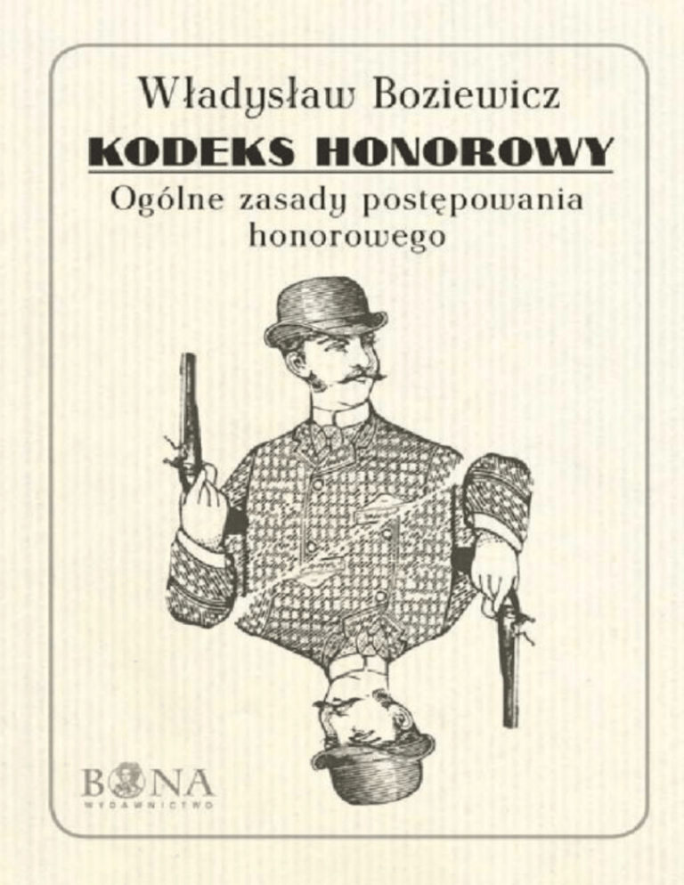 Kraków jest prawdziwą potęgą wydawniczą. Działa tu ponad 1 0 0 w yd a w có w publikujących dosłownie wszystko: od literatury sensacyjnej po wiersze noblistów, od romansu po podręczniki akademickie, od biografii po fantastykę. Publikacje krakowskich oficyn odnoszą sukcesy na krajowym rynku wydawniczym, otrzymują najważniejsze nagrody literackie, ale przede wszystkim stanowią znakomitą ofertę dla czytelnika, który w bogactwie tytułów i gatunków zawsze znajdzie coś dla siebie. Dlatego wspólnie z krakowskimi wydawcami proponujemy Ci blisko 7 0 te kstó w , jakie warto przeczytać tego lata. Wśród nich z pewnością znajdziesz opowieść idealną dla siebie. A jeśli po przeczytaniu darmowego fragmentu książki nie będziesz w stanie się już od niej oderwać, z łatwością możesz nabyć e-booka klikając w link na końcu zeskanowanego fragmentu. Możesz też udać się do jednej z poniższych krakowskich księgarń, gdzie pokazując pobrany fragment ebooka skorzystasz z 1 0 -p ro ce n to w e g o ra b a tu n a za ku p tra d ycyj n e j w e rsj i ksi ą żki : • • • • • Ksi ę g a rn i a Ksi ę g a rn i a Ksi ę g a rn i a Ksi ę g a rn i a Ksi ę g a rn i a Bo n a p rzy u l i cy Ka n o n i cze j 1 1 Ma tra s p rzy R yn ku Gł ó w n ym 2 3 i w Ga l e ri i Ka zi m i e rz Mł o d a w Ka m i e n i cy Szo ł a yski ch p rzy Pl a cu Szcze p a ń ski m 9 Mu za p rzy u l . Kró l e w ski e j 4 7 Po d Gl o b u se m p rzy u l . D ł u g i e j 1 Wi rtu a l n a Bi b l i o te ka Wyd a w có w to czę ść p ro g ra m u Kra kó w Mi a sto L i te ra tu ry. Akcję organizuje Krakowskie Biuro Festiwalowe. Partnerami akcji są: Instytut Książki oraz wydawnictwa i organizacje: a5, Austeria, Bona, Dodo Editor, Fundacja Przestrzeń Kobiet, Insignis Media, Karakter, Koobe, Sine Qua Non, Skrzat, Stowarzyszenie Pisarzy Polskich, WAM, Wydawnictwo Literackie, Wydawnictwo Otwarte, Znak, Znak Literanova, Znak Emotikon. Projekt dofinansowany jest ze środków Ministerstwa Kultury i Dziedzictwa Narodowego z programu Promocja Czytelnictwa. Wi ę ce j i n fo rm a cj i n a stro n i e w w w .m i a sto l i te ra tu ry.p l Podstawa niniejszego wydania: Władysław Boziewicz, Ogólne zasady postępowania honorowego (Kodeks honorowy), wydanie trzecie poprawione, Poznań 1932 Projekt typograficzny i skład: Monika Stojek Adiustacja: Anna Szczepańska-Krasoń Korekta: Małgorzata Poździk / d2d.pl, Małgorzata Pasicka Wybór not prasowych zamieszczonych w Apendyksie: Monika Stojek Projekt okładki: Marek Pawłowski Copyright © for the Polish edition by Wydawnictwo Bona, Kraków 2012 Wydanie I w tej edycji ISBN 978-83-62836-40-6 Wydawnictwo Bona sp. z o.o. ul. Kanonicza 11 31-002 Kraków tel. 12 430-22-90 [email protected] www.wydawnictwobona.pl księgarnia internetowa: www.bonamedia.pl Konwersja do formatu EPUB: Virtualo Sp. z o.o. virtualo.eu Przedmowa W roku 1919, a zatem w czasie zawieruchy wojennej, napisałem w stosunkowo bardzo krótkim c z a s i e Polski kodeks honorowy, zawierający w części pierwszej zasady pokojowego postępowania honorowego, zaś w części drugiej rzecz o pojedynku. Przy opracowywaniu tego kodeksu, przewodnią moją myślą było po odrodzeniu Ojczyzny uniezależnienie zasad postępowania honorowego od obcych i niejednokrotnie zakorzenionych zwyczajów, które po większej części były sprzeczne z tradycją i duchem Narodu. Kodeks ten, pisany dorywczo i w bardzo trudnych warunkach, zawierał w zasadzie reguły w przeważnej części rozumiane i dobrze interpretowane jedynie przez ludzi obznajmionych już z zasadami honorowymi. Częste z jednej strony zwracania się do mnie, jak odnośne przepisy tego kodeksu tłumaczyć należy, jak postąpić w wypadkach nieobjętych kodeksem, z drugiej strony fakt, że kodeks ów, mimo widocznych dla mnie braków, w stosunkowo krótkim czasie rozszedł się w kilku wydaniach, a zatem, że brak kodeksu był odczuwany – skłoniły mnie do podjęcia nowej pracy i ujęcia w obecnie wydanych Ogólnych zasadach postępowania honorowego całokształtu zasad honorowych. Przede wszystkiem musiałem zmienić system, aby uzyskać łatwość odnalezienia potrzebnych przepisów, dawniej nieraz rozrzuconych niewłaściwie i luźnie po poszczególnych rozdziałach. Następnie zmieniłem cały szereg norm, które okazały się obecnie nieodpowiedniemi, zamieściłem bardzo wiele nowych przepisów, by uniknąć luk, jakie tak często w poprzednim moim kodeksie dawały się we znaki, usunąłem szereg artykułów już to kolidujących ze sobą, już to nawet sprzecznych. W tych warunkach nieliczna nawet ilość przepisów dawnych musiała ulec kompletnemu przerobieniu. W ten sposób powoli i w ciągu długiego czasu, powstała praca kompletnie nowa, a czy moja intencja – by dać do rąk zastępców podręcznik tak dobry, aby na podstawie tam zawartych przepisów i uwag każdą sprawę załatwić mogli, osiągnie zamierzony cel – okaże przyszłość. Wszystkim, którzy niniejszych przepisów używać będą, byłbym bardzo wdzięczny, jeżeli zwrócą mi uwagę na ewentualne braki niniejszych Ogólnych zasad postępowania honorowego, gdyż z doświadczenia wiem, jak przykre następstwa i jak często powstają nie tylko z nieznajomości ogólnie przyjętych zasad postępowania honorowego, ale także z błędów i braków kodeksów, przyjętych za podstawę przy pertraktacjach honorowych. Kraków, w lipcu 1927 Władysław Boziewicz Wstęp Załatwianie spraw z bronią w ręku jest bezsprzecznie zabytkiem średniowiecza. W nowszych czasach, cały szereg autorów kodeksów honorowych stanął na stanowisku, iż nie wszystkie sprawy honorowe winny być rozstrzygane z bronią w ręku, że większość z nich nadaje się do polubownego załatwienia, zaś starcie orężne niejednokrotnie jest objawem lekkomyślności, próżności i fanfaronady. Wprowadzona instytucja sądów honorowych i sędziów rozjemczych bezsprzecznie sprowadza zatargi 