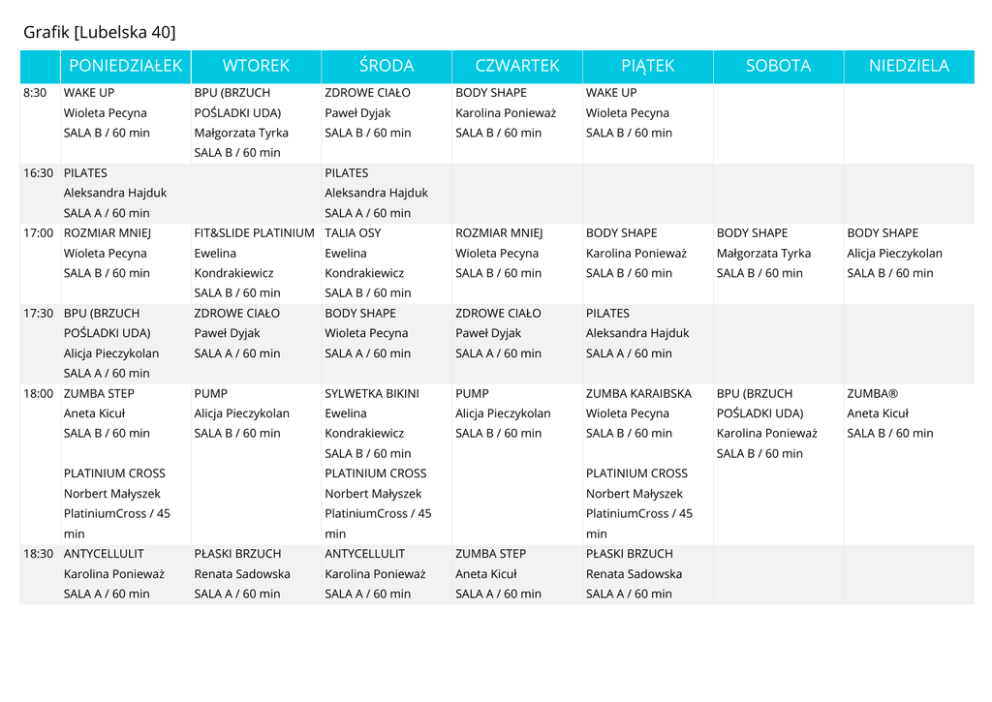 Pobierz grafik PDF - Fitness Platinium