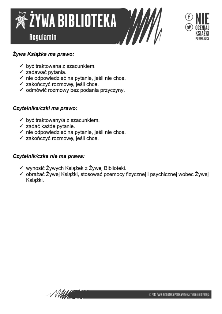 Żywa Książka ma prawo: być traktowana z szacunkiem. zadawać