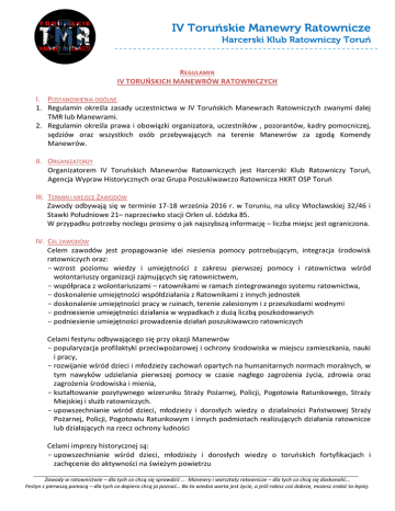 Regulamin IV Toruńskich Manewrów Ratowniczych