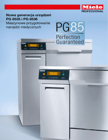 Nowa generacja urządzeń PG 8535 i PG 8536 Maszynowe przygotowanie narzędzi medycznych Miele od ponad czterdziestu lat wprowadza innowacyjne rozwiązania w zakresie maszynowego przygotowania narzędzi medycznych w szpitalach i gabinetach lekarskich. 2 Generacja automatów myjąco-dezynfekujących PG 85 to urządzenia oparte na najnowocześniejszej technologii, bardzo proste w obsłudze i ekonomiczne. Tak jak wszystkie urządzenia z serii PG 85 nowe automaty PG 8535 i PG 8536 jako pierwsze w swojej kategorii posiadają w pełni elektroniczne, nowoczesne sterowanie Profitronic Plus. Nowa koncepcja Profitronic Plus to dla użytkownika elastyczność obsługi dająca szerokie możliwości indywidualnego programowania i dostosowania parametrów mycia i dezynfekcji do indywidualnych potrzeb. W zastosowaniu dla zcentralizowanego i zdecentralizowanego przygotowania narzędzi medycznych automaty PG 8535 i PG 8536 przekonują innowacyjnymi, opatentowanymi rozwiązaniami. Automat myjąco-dezynfekujący PG 8535* Automat myjąco-dezynfekujący PG 8535 Wydajność: 2 zestawy anestezjologiczne lub 1-2 zestawów mikrochirurgicznych lub 48 wzierników ginekologicznych lub 4 pojemniki DIN. Szerokość zabudowy: wys. 820 szer. 900, gł. 700 mm Konstrukcja: • Urządzenie ładowane od przodu z drzwiami otwieranymi w płaszczyźnie poziomej • Urządzenie do zabudowy • Zintegrowany system suszenia HEPA Okładzina zewnętrzna: • Stal szlachetna • Konstrukcja 2 płaszczowa – niski poziom emisji ciepła i hałasu • Krótkie cykle programów • Komora mycia ze stali nierdzewnej Sterowanie: PROFITRONIC PLUS – sterowanie z 64 programami (17 standardowych programów do mycia i dezynfekcji, 15 programów serwisowych oraz 32 miejsca na indywidualnie tworzone programy) Przykładowe programy do przygotowania narzędzi medycznych: Vario TD – standardowy program myjąco-dezynfekujący Vario TD AN – przeznaczony do narzędzi anestezjologicznych Vario TD NR – przeznaczony do instrumentów wrażliwych alkalicznie Oxivario** – oksydatywny program Vario do intensywnego czyszczenia Oxivario Plus** – zalecany do prewencji przy chorobie Creutzfelda – Jakoba Okulistyka – program przeznaczony do czyszczenia operacyjnych instrumentów okulistycznych Wyposażenie: • Bezpośrednie sprzężenie koszy górnych i wózków iniekcyjnych z przewodem wodnym • Zmiękczacz wody Profi-Monobloc • Kondensator pary • Agregat suszący • Pompa obiegowa (Qmax.l/min: 400 l) • Poczwórny system filtrowania (z sitem powierzchniowym, filtrem zgrubnym, filtrem wychwytującym odłamki szkła, mikrofiltrem) • Elektryczna blokada drzwi • Port szeregowy RS 232 do dokumentacji procesowej • System automatycznego rozpoznawania wózków • Waterproof system Innowacyjne rozwiązania Miele: • Perfect Touch Control • Perfect Speed Control • Perfect Flow Sensor • Perfect HEPA Draying • Perfect Doc Urządzenia dozujące: • Dwie zintegrowane pompy: 1 pompa dozująca do płynnych kwaśnych środków 1 pompa dozująca do płynnych środków myjących • Możliwość podłączenia DOS G10 lub DOS G60 • Szuflada na 2 kanistry po 5 l do środków płynnych • Certyfikaty i znaki bezpieczeństwa VDE VDE-EMC MPG CE 0366 IP20 • Urządzenie spełniające normy ISO 15883 Opcjonalnie: • Urządzenie dozujące DOS G 60 do płynnych środków dezynfekujących • Urządzenie dozujące DOS G 10 dla środków do płukania końcowego • Pokrywa Wyposażenie i akcesoria: Kosze, wkłady i akcesoria do nowego PG 8535 pozostają takie same jak w przypadku poprzedniego modelu G 7835 CD * Urządzenie dostępne w II kwartale 2011 r. ** Programy Oxivario i Oxivario PLUS można sotosować tylko wtedy, gdy automat myjący jest wyposażony w zestaw doposażenia OXIVARIO 3 Automat myjąco-dezynfekujący PG 8536 Automat myjąco-dezynfekujący PG 8536 Wydajność: 3 zestawy anestezjologiczne lub 1-2 zestawów mikrochirurgicznych lub 48 wzierników ginekologicznych lub 7 pojemników DIN. Szerokość zabudowy: wys. 1175 szer. 900, gł. 700 mm Konstrukcja: • Urządzenie ładowane od przodu z drzwiami otwieranymi w płaszczyźnie poziomej • Urządzenie wolnostojące • Zintegrowany system suszenia HEPA Okładzina zewnętrzna: • Stal szlachetna • Konstrukcja 2 płaszczowa – niski poziom emisji ciepła i hałasu • Krótkie cykle programów • Komora mycia ze stali nierdzewnej Sterowanie: PROFITRONIC PLUS - sterowanie z 64 programami (18 standardowych programów do mycia i dezynfekcji, 14 programów serwisowych oraz 32 miejsca na indywidualnie tworzone programy) Przykładowe programy do przygotowania narzędzi medycznych: Vario TD – standardowy program myjąco-dezynfekujący Vario TD AN – przeznaczony do narzędzi anestezjologicznych Vario TD NR – przeznaczony do instrumentów wrażliwych alkalicznie Oxivario* – oksydatywny program Vario do intensywnego czyszczenia Oxivario Plus* – zalecany do prewencji przy chorobie Creutzfelda-Jakoba Orthovario** – oksydatywny program dla ortopedii przeznaczony do czyszczenia delikatnego aluminium Okulistyka – program przeznaczony do czyszczenia operacyjnych instrumentów okulistycznych Wyposażenie: • Bezpośrednie sprzężenie koszy górnych i wózków iniekcyjnych z przewodem wodnym • Wielokomorowy zmiękczacz wody • Kondensator pary • Agregat suszący • Pompa obiegowa (Qmax.l/min: 600 l). • Poczwórny system filtrowania (z sitem powierzchniowym, filtrem zgrubnym, filtrem wychwytującym odłamki szkła, mikrofiltrem) • Elektryczna blokada drzwi • Port szeregowy RS 232 do dokumentacji procesowej • System automatycznego rozpoznawania wózków • Waterproof system Innowacyjne rozwiązania Miele: • Perfect Touch Control • Perfect Speed Control • Perfect Flow Sensor • Perfect HEPA Draying • Perfect Doc • Perfect Pure Sensor Urządzenia dozujące: • Dwie zintegrowane pompy: 1 pompa dozująca do płynnych kwaśnych środków 1 pompa dozująca d