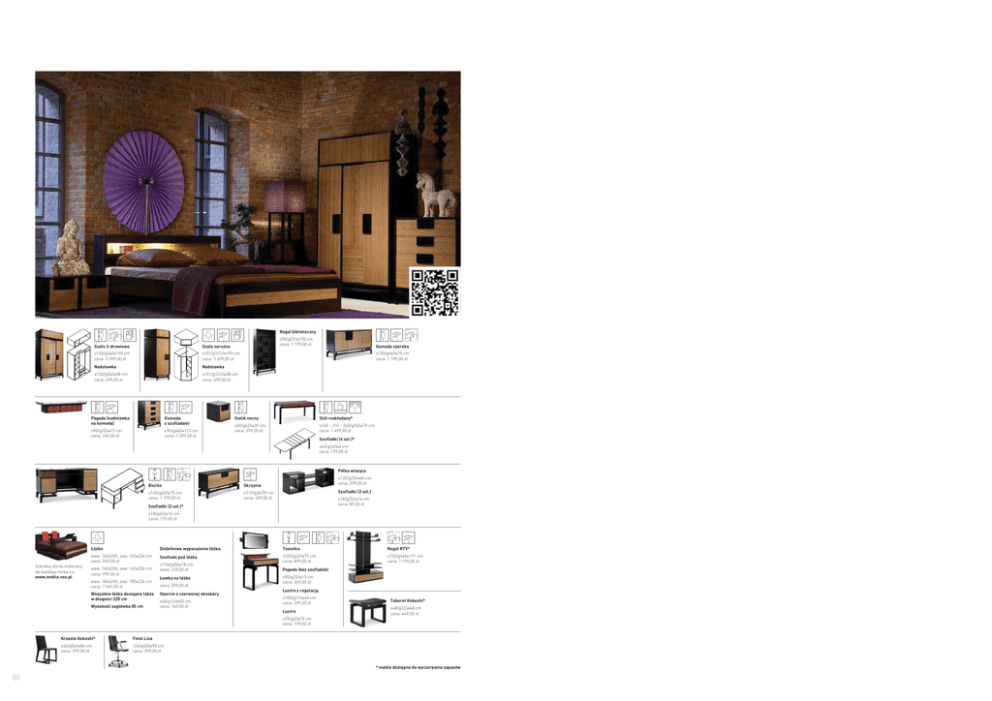 Regał biblioteczny s90/g37/w190 cm cena: 1 199,00 zł Szafa 3-drzwiowa Szafa narożna s130/g56/w190 cm cena: 2 399,00 zł s101/g101/w190 cm cena: 1 699,00 zł Nadstawka Nadstawka s130/g56/w38 cm cena: 499,00 zł s101/g101/w38 cm cena: 499,00 zł Pagoda (nadstawka na komodę) Komoda z szufladami s90/g25/w15 cm cena: 249,00 zł s90/g46/w113 cm cena: 1 399,00 zł Komoda szeroka s130/g46/w75 cm cena: 1 199,00 zł Stolik nocny Stół rozkładany* s39/g42/w39 cm cena: 399,00 zł s160 - 210 - 260/g90/w79 cm cena: 1 499,00 zł Szufladki (4 szt.)* s63/g24/w6 cm cena: 199,00 zł Półka wisząca Biurko Skrzynia s145/g63/w75 cm cena: 1 199,00 zł s119/g36/59 cm cena: 659,00 zł s130/g25/w40 cm cena: 299,00 zł Szufladki (2 szt.) s18/g25/w16 cm cena: 89,00 zł Szufladki (2 szt.)* s18/g60/w16 cm cena: 119,00 zł Szeroka oferta materacy do każdego łóżka na www.meble.vox.pl Łóżko Dodatkowe wyposażenie łóżka: Toaletka Regał RTV* wew. 140x200; zew. 145x226 cm cena: 949,00 zł Szuflada pod łóżko s100/g42/w75 cm cena: 899,00 zł s130/g66/w191 cm cena: 1 199,00 zł wew. 160x200; zew. 165x226 cm cena: 999,00 zł wew. 180x200; zew. 185x226 cm cena: 1 049,00 zł Wszystkie łóżka dostępne także w długości 220 cm Wysokość zagłówka 85 cm s174/g65/w18 cm cena: 229,00 zł Ławka na łóżko cena: 599,00 zł Oparcie z czerwonej ekoskóry s40/g12/w50 cm cena: 169,00 zł Pagoda (bez szufladek) s90/g25/w15 cm cena: 249,00 zł Lustro z regulacją s105/g11/w45 cm cena: 399,00 zł Taboret Kokeshi* Lustro s48/g32/w48 cm cena: 449,00 zł s70/g3/w70 cm cena: 199,00 zł Krzesło Kokeshi* Fotel Lisa s46/g56/w86 cm cena: 299,00 zł s54/g45/w90 cm cena: 399,00 zł * meble dostępne do wyczerpania zapasów 80