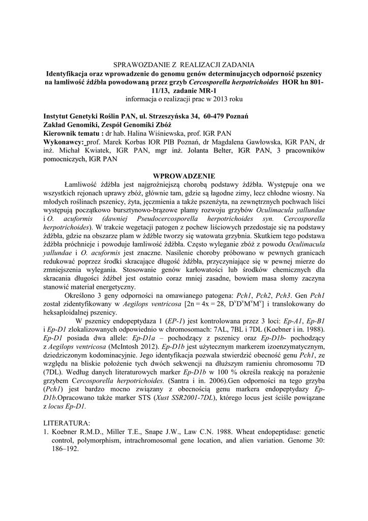sprawozdanie 2013 - Instytut Genetyki Roślin