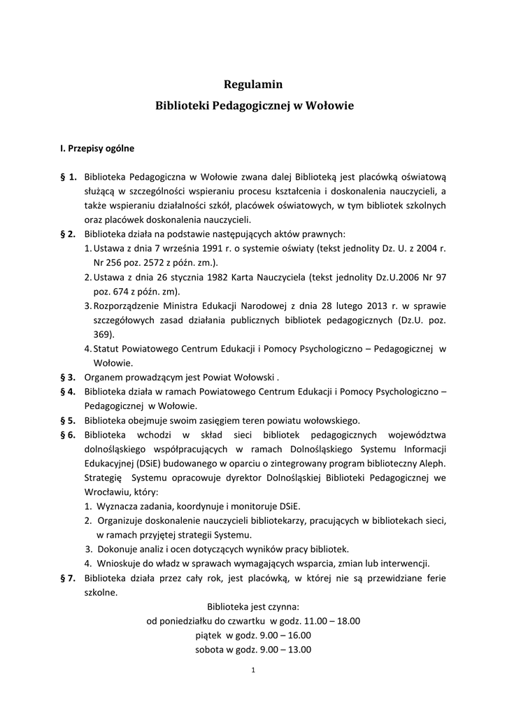 Regulamin Biblioteki Pedagogicznej w Wołowie