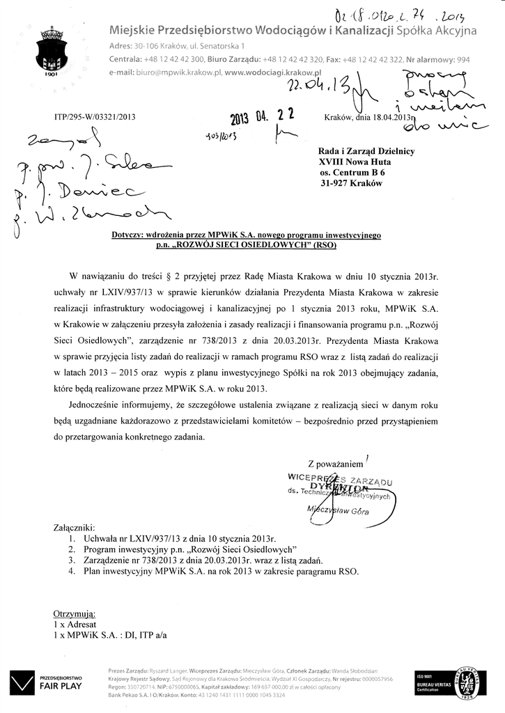 stycznia 2013 roku, MPWiK S.A.