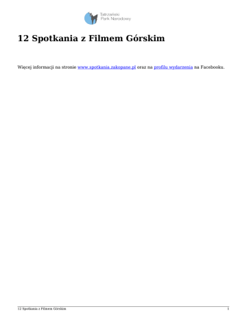 12 Spotkania z Filmem Górskim Więcej informacji na stronie www.spotkania.zakopane.pl oraz na profilu wydarzenia na Facebooku. 12 Spotkania z Filmem Górskim 1