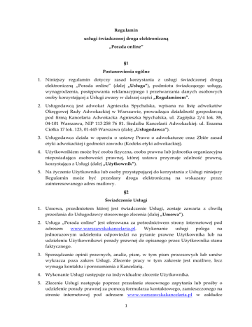 regulaminem usługi - Kancelaria Adwokacka Agnieszka Spychalska