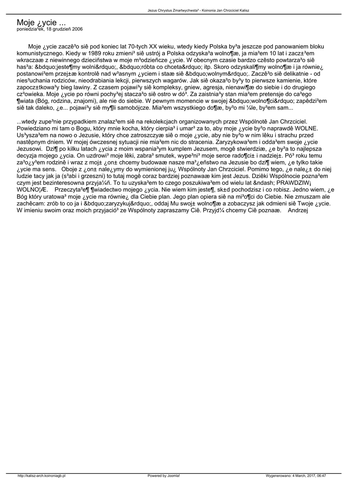 Moje ¿ycie - Koinonia Jan Chrzciciel Kalisz
