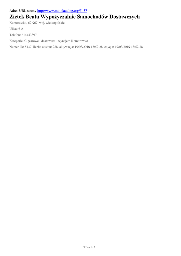 Zietek Beata Wypozyczalnie Samochodow Dostawczych