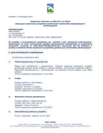 Zapytanie ofertowe - Stowarzyszenie Ptaki Polskie