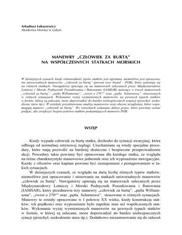 manewry „człowiek za burtą” na współczesnych statkach morskich