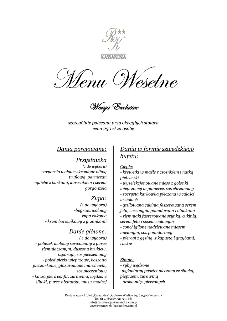 Wersja Exclusive - Restauracja Hotel Kassandra