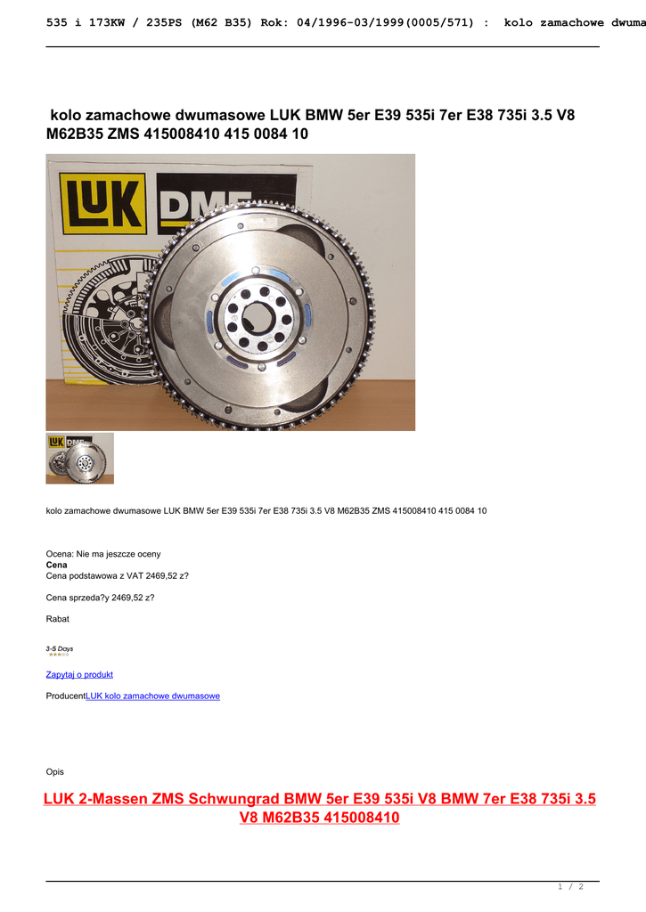 kolo zamachowe dwumasowe LUK BMW 5er E39 535i 7er E38 735i