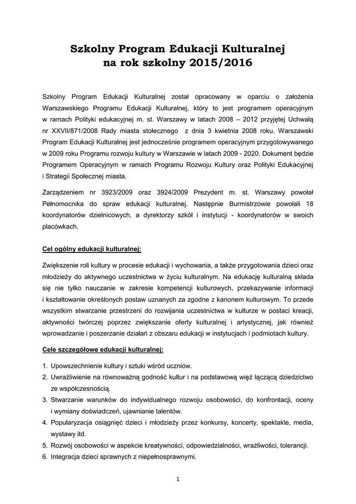 Szkolny Program Edukacji Kulturalnej na rok szkolny 2015