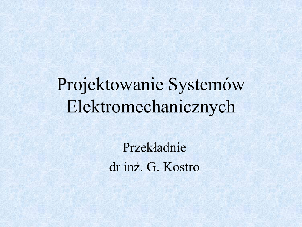 Projektowanie Systemów Elektromechanicznych Przekładnie dr inż. G. Kostro Przekładnie • Zębate: – – – – Proste; Złożone; Ślimakowe; Planetarne. • Cięgnowe: – Pasowe; – Łańcuchowe; – Linowe. Przekładnie • Hydrauliczne: – Hydrostatyczne; – Hydrokinetyczne – podstawą działania jest wykorzystanie energii kinetycznej płynu. Stosowane w automatycznych skrzyniach biegów. Charakteryzują się stosunkowo niską sprawnością i możliwością przeciążenia bez niebezpieczeństwa przeciążenia układu napędowego. Przekładnie zębate Zalety: • Łatwość wykonania; • Stosunkowo małe gabaryty; • Stosunkowo cicha praca – przy odpowiednim smarowaniu; • Duża równomierność pracy; • Wysoka sprawność (do 98%) Przekładnie zębate Wady: • Stosunkowo niskie przełożenie dla pojedynczego stopnia; • Sztywna geometria; • Brak naturalnego zabezpieczenia przed przeciążeniem. Przekładnie zębate - podział Ze względu na umiejscowienie zazębienia • Zazębienie zewnętrzne; • Zazębienie wewnętrzne. Rodzaj ruchu: • Przekładnia obrotowa; • Przekładnia liniowa. Przekładnie zębate - podział • Wzajemne usytuowanie osi obrotu • Przekładnia czołowa: – Walcowa; – Stożkowa. • Przekładnia śrubowa: – Ślimakowa; – Hiperboloidalna. Przekładnia prosta Przełożenie przekładni 1 i 2 n1 i n2 Wprowadzając pojęcie średnicy podziałowej, modułu oraz podziałki zęba d2 i d1 d z p zm z2 i z1 Przełożenie przekładni prostej wielostopniowej: i1,n i1, 2 i2,3 i3, 4 in1,n Parametry przekładni Przekładnia ślimakowa Przekładnia ślimakowa ma zastosowanie wszędzie tam, gdzie istotne są zarówno duże przełożenie jak i możliwość napędzania jedynie z jednej strony przy samohamowności z drugiej. Przekładnia ślimakowa Ślimak - stal hartowana Ślimacznica – żeliwo lub brąz Przekładnia ślimakowa obliczenia tg tg ( ) tg ( ) tg γ – kąt wzniosu gwintu ς – „kąt tarcia”, taki że współczynnik µ=tgς Elementem napędzającym jest ślimak Elementem napędzającym jest ślimacznica Samohamowność, gdy: γ < ς, η < 0 Zastosowanie • Mechanizm naciągu strun w instrumentach strunowych, takich jak gitara, skrzypce, pianino; • Przełożenia w napędach mechanicznych, np. ruchomy stół do frezarki, podajniki taśmowe; • Redukcja obrotów, np. układ napędowy kosiarek; • Samohamowne przełożenia mechanizmów małej mocy, np. elektrycznie opuszczane szyby w samochodzie, • napęd wycieraczek samochodowych Przekładnia planetarna (obiegowa) • Koło zębate wewnętrzne (centralne) z uzębieniem zewnętrznym; • Satelity połączone jarzmem (2, 3 lub 4); • Koło zębate zewnętrzne z uzębieniem wewnętrznym. Przekładnia planetarna Przekładnia planetarna (obiegowa) Koło zębate zewnętrzne satelita Koło zębate wewnętrzne (słoneczne) Ruchome jarzmo Przekładnia planetarna przełożenie • Metoda chwilowego środka obrotu Prędkość liniową „V” w ruchu płaskim dowolnego punktu „A” ciała poruszającego się ruchem obrotowym z prędkością kątową „ω” względem nieruchomego w danej chwili punktu „B” można policzyć jako iloczyn prędkości kątowej „ω” i odległości „r” pomiędzy punktami „A” i „B” Przekładnia planetarna przełożenie 1 i j 3 1, j Względem punktu C vB 2 r2 v A 2 2r2 v A 2vB Przekładnia planetarna przełożenie Względem punktu O vB j rj j (r1 r2 ) v A 1 r1 wiedząc, że: v A 2vB 1 r1 2 j (r1 r2 ) Przekładnia planetarna przełożenie 1 2 r1 2 r2 j r1 r3 r1 2 r2 ostatecznie: z3 1 r1 r3 z1 z3 i 1 j r1 z1 z1 3 1, j Przekładnia planetarna przełożenie • Metoda „myślowego unieruchomienia jarzma” c a ,b i 3 1, j i 1 i j 1, 3 1 i b a ,c 1 i i j 1, 2 j 2,3 z 2 z3 z3 1 1 z1 z1 z2 Przekładnia planetarna zastosowanie • Mechanizm różnicowy • Równomierne obciążenie kół • Zablokowane jedno z kół Przekładnia planetarna zastosowanie • Przekładnie w turbinach Przekładnia planetarna zastosowanie • Urządzenie rozdziału mocy (Power Split Device) -Toyota Prius • ICE – silnik spalinowy, połączony z jarzmem; • MG1 – silnik elektryczny – połączony z kołem centralnym; • MG2 – silnik elektryczny połączony z kołem zewnętrznym i napędem kół Stany pracy Power Split Device • Praca silnika spalinowego z maksymalną sprawnością; • Sterowanie prędkością samochodu poprzez zmianę prędkości silników elektrycznych; • Działanie silnika MG1 jako rozrusznika; • Zamiana energii mechanicznej ICE na energię elektryczną w MG1 i MG2; • Osiąganie dużych mocy przy jednoczesnym włączeniu ICE, MG1 i MG2. Przekładnie cięgnowe Przekładnia pasowa Zalety: • Łagodzenie gwałtownych zmian obciążenia; • Tłumienie drgań; • Zabezpieczenie zespołów napędowych przed nadmiernym przeciążeniem; • Prostota, niskie koszty wytwarzania; • Mała wrażliwość na dokładność wzajemnego ustawienia osi Przekładnia pasowa • Wady: • Mała zwartość; • Duże siły obciążające wały i łożyska – naciąg pasów; • Niestałość przełożenia – poślizg pasów. Sprawność: =0,95-0,96 - tarcie koło-pas, tarcie wewnętrzne, opory aerodynamiczne Przekładnia pasowa Mocowanie koła: • Bezpośrednie • Specjalne podpory Pozorny współczynnik tarcia: β – kąt rozwarcia rowka na kole: 34̊, 36̊, 38̊ Przełożenia: i = 1,2-6 (max. 10) Liczba pasów przekładni: • z = 1-5 (max. 8) Duża liczba pasów: • Mała zwartość przekładni • Nierównomierne przenoszenie obciążenia • Duże prawdopodobieństwo uszkodzenia przekładni Przekładnia pasowa Typy pasów: • Pasy zwykłe: • A, B, C, D, E, 20, 25; • Pasy specjalne: • HZ, HA, HB, HC, HE, H20, H25 Przekładnia pasowa - schemat Przekładnia pasowa - obliczenia 1. Wstępny dobór przekroju pasa, średnicy mniejszego koła (najmniejsze w danym typoszeregu, ze względu na zwartość przekładni) 2. Obliczenie prędk