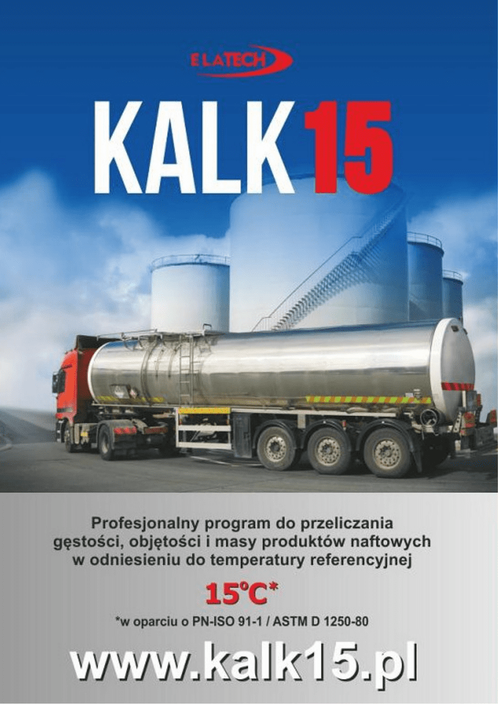 Paliwo w 15 stopniach – umiesz liczyć? Licz na siebie… Kupować „w 15-tu” czy „w rzeczywistej”? Co się bardziej opłaca? Jak sprawdzić dostawcę? Mam braki, ale skąd one się biorą? W niniejszym artykule poznacie Państwo narzędzie, dzięki któremu łatwiej będzie znaleźć odpowiedź na te pytania. UWAGA! Przeczytanie do końca premiowane specjalnym kodem uprawniającym do skorzystania z pełnej, bezpłatnej, miesięcznej wersji przygotowanej specjalnie dla czytelników „Paliw Płynnych”. 15 stopni – kto to policzy? Temperatura referencyjna, temperatura odniesienia lub po prostu „15 stopni”. Z powyższymi terminami spotkał się prawdopodobnie każdy, kto choć przez chwilę zajmował się zakupem sprzedażą lub rozliczaniem oleju napędowego, opałowego czy benzyn samochodowych. Nie wszyscy zdają sobie sprawę jak istotną rzeczą jest świadome i poprawne przeliczanie gęstości i objętości paliw w odniesieniu do temperatury 15oC. Zainteresowani powinni być właściwie wszyscy, którzy mają do czynienia z obrotem paliwem w zakresie szerszym niż tylko tankowanie własnej osobówki. Stacje paliw, hurtownie, bazy paliwowe, przedsiębiorstwa posiadające zbiorniki na własne potrzeby - osoby odpowiadające za rozliczanie obrotu paliwem w tego typu firmach borykają się dużymi problemami związanymi z poprawnym wyznaczaniem objętości paliwa przy przejściu z temperatury referencyjnej do temperatury obserwowanej lub odwrotnie. Ci bardziej dociekliwi wertują publikacje, Internet, szukają tablic i współczynników, ale zdobycie ich to dopiero połowa sukcesu. Aby uzyskać ostateczny wynik trzeba jeszcze rozgrzać do czerwoności kartki, długopisy i kalkulatory… Kalkulator 15oC Zwykłe kalkulatory to urządzenia znane praktycznie wszystkim, ogólnodostępne i tanie. Brakuje im jednak funkcji, które znacząco ułatwiłyby pracę osobom z branży paliwowej. Prawie dziesięcioletnie doświadczenie zdobyte na rynku paliwowym skłoniło firmę ELATECH do stworzenia programu komputerowego łączącego prostotę obsługi zwykłego kalkulatora z zaawansowanymi funkcjami przeliczeniowymi dla produktów naftowych. Policz sam, sprawdzoną metodą KALK15, bo o nim mowa, jest odpowiedzią na potrzeby firm działających w sektorze paliwowym. Program pozwala dokładnie, łatwo i co najważniejsze szybko przeliczać wielkości charakterystyczne dla przetworów naftowych. Bazując na „Tablicach przeliczeniowych dla przetworów naftowych 53B i 54B APIASTM-IP" wyznacza, gęstość i objętość dla temperatury 15oC lub temperatury obserwowanej (pomiaru). Dodatkowo, co jest przydatne dla baz paliwowych, można wykonywać przeliczenia uwzględniające masę paliwa. Dostawa – ile właściwie kupiłem? Zakup paliwa zarówno w temperaturze 15oC jak i w temperaturze rzeczywistej niesie ze sobą ryzyko powstania braku. Istotą rzeczy jest świadomość jego wielkości. Ilość paliwa na fakturze, za którą przyjdzie nam zapłacić, może odbiegać od ilości, którą następnie sprzedamy klientom, czy wydamy do własnych pojazdów. Zastosowanie programu KALK15 pomoże ocenić, jaką faktycznie ilością dysponujemy, czy nie zostaliśmy oszukani, bądź też pozwoli wybrać korzystniejszą dla nas formę zakupu paliwa. Obserwując średnią temperaturę paliwa w danym okresie i w odniesieniu do niej przeliczając ilość zakupionego paliwa łatwo określimy wielkość ubytków (albo nadwyżek – choć, biorąc pod uwagę warunki klimatyczne w Polsce, zjawisko to jest rzadziej spotykane). Z naszych obserwacji wynika, że średnia temperatura paliwa w okresie zimowym, w zbiornikach naziemnych, może oscylować w granicach -2, -3 stopni Celsjusza, czyli około 17, 18 stopni poniżej przyjętej temperatury referencyjnej 15oC. Uzyskanie, w okresie letnim, średniej temperatury paliwa rzędu +32oC jest praktycznie niespotykane. Widać zatem, że stosunek nadwyżek i ubytków w obrocie paliwem na przestrzeni roku przeważa jednak w stronę ubytków. Dlatego właśnie kluczowa jest wiedza na temat ich wielkości. Bez umiejętności przeliczania zmiany objętości paliwa w odniesieniu do temperatury panowanie nad sytuacją trudne. może okazać się Prosty przykład … Wyobraźmy sobie sytuację, że kupujemy 25 000 litrów paliwa w temperaturze 15oC. Jest piękny słoneczny zimowy dzień. Cysterna przywozi z bazy naftowej zamówione paliwo. Po jego zlaniu do zbiornika otrzymujemy wydruk z licznika, potwierdzający wydanie 25 000 litrów paliwa o temperaturze np. 2oC i gęstości w 15oC rzędu 832 kg/m3, lub w przypadku zrzutu grawitacyjnego dokumenty załadunku. Rodzi się pytanie ile faktycznie paliwa wlano do mojego zbiornika? Użytkownik programu KALK15 jest w stanie odpowiedzieć na nie w ciągu kilku sekund. Po wprowadzeniu danych otrzymuje wynik 24 732 litrów. Coraz częściej zdarzają się sytuacje, że liczniki cystern drukują potwierdzenie wydania, na którym otrzymamy obydwie wartości, tzn. objętość paliwa w 15oC oraz w temperaturze rzeczywistej. Po co zatem KALK15? KALK15 przyda się do tego, aby określić, jaką ilością paliwa będziemy dysponować, kiedy jego temperatura się ustabilizuje, czyli osiągnie np. średnią w danym okresie temp. -3oC. Okazuje się, że już kolejnego dnia po dostawie możemy mieć w naszym przypadku tylko 24 629 litrów (ubytek ok. 100 litrów). Właściciele zbiorników podziemnych, szczególnie zimą, mogą zaobserwować odwrotną sytuację, tzn. po dostawie temperatura paliwa w zbiorniku wzrośnie, a zatem paliwa przybędzie. Zakładając, że średnia temperatura paliwa zimą, w zbiorniku podziemnym, wynosi ok. +5oC i przy wykorzystaniu KALK15 możemy wyliczyć, że w/w dostawa po ustabilizowaniu temperatury „urośnie” do 24 794 litrów (ponad 60 litrów przyrostu). Wykonanie powyższych obliczeń pozwoli nie tylko ocenić wielkość ubytku czy przyrostu, ale również udokumentować ilość faktycznie przyjętego