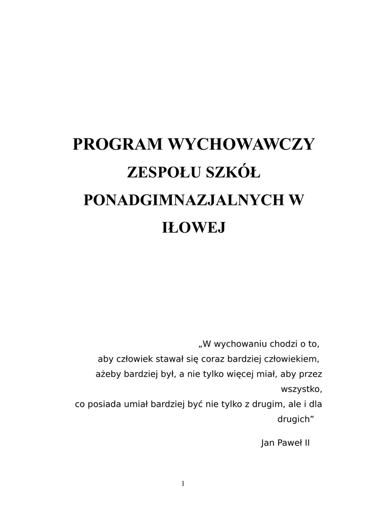 Plan wychowawczy - Zespół Szkół Ponadgimnazjalnych w Iłowej