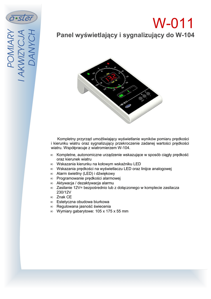W-011 Panel wyświetlający i sygnalizujący do W-104 - A-STER