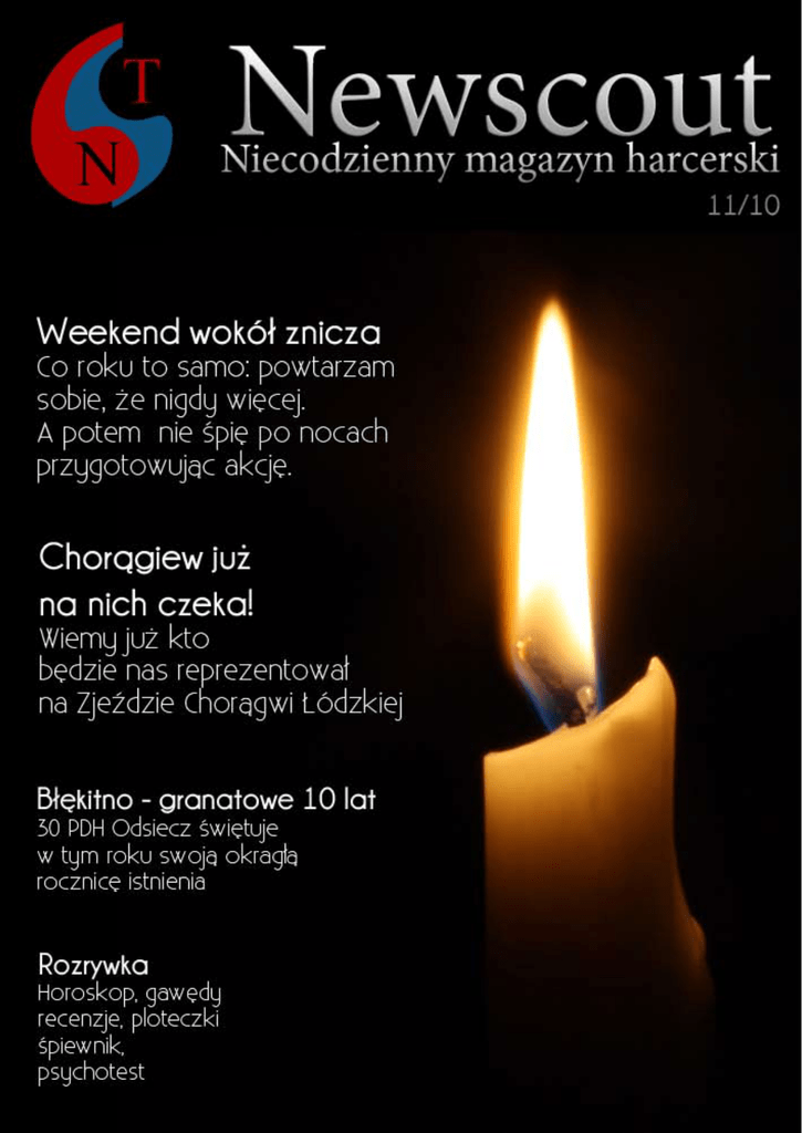 starter Obyście dotrwali do drugiego numeru... Ż yczyła nam Ania, która składa naszą gazetę. Ania wie, co mówi: współtworzy od lat jeden z pabianickich tygodników, wie, jakim wysiłkiem jest przygotowanie każdego egzemplarza gazety. Cóż, nie bez trudu, ale jednak się udało: oto drugi numer trafił w wasze ręce, (a raczej na ekrany waszych komputerów), nie jest więc chyba źle. Znajdziecie w nim (bez zbędnej skromności): więcej świetnych porad Małego Cieśli, mega- zabawny horoskop i psychotesty, aktualności z kraju i świata. W tym numerze harcerzem miesiąca jest druhna Dorota Pawłowska, pełniąca niezwykle ważną funkcję zastępcy komendanta do spraw programowych. Wędrownicy znajdą dla siebie tekst, w którym Monika- Brukselka bezlitośnie rozprawia się ze sprowadzaniem harcerzy do roli ozdób na różnych miejskich uroczystościach. Nie mogło również zabraknąć relacji z największej w roku akcji zarobkowej wszystkich harcerzy: gorące sprawozdanie z pola walki, czyli akcja „Znicz”. To wszystko i jeszcze więcej w drugim szczęśliwie wydania numerze „Newscout”. Wnikliwy czytelnik zapewne znalazł w naszym pierwszym wydaniu kilka ingerencji wstrętnego zwierza: dziennikarskiego chochlika. Za wszelkie błędy serdecznie przepraszamy, przypominając jednocześnie, że „ten nie błądzi, kto nic nie robi”, jak i „pierwsze koty za płoty”. Dokładamy wszelkich starań, by wstrętne chochlikowe licho wyeliminować. Czekamy na wasze uwagi, opinie i problemy: niech dział „listy” nie będzie tylko naszą radosną twórczością! Teraz należy nam życzyć, abyśmy dotrwali do trzeciego numeru. A potem do czwartego, i piątego... Eh, ciężkie jest życie dziennikarza! CZUWAJ! Redakcja „Newscout” Listy do redakcji Mam problem. Jestem w drużynie harcerskiej . Uwielbiam chodzić na zbiórki i przebywać z ludźmi z mojej drużyny, ale chciałabym też przychodzić na zbiórki w drużynie wodnej. Kocham pływać dlatego chciałabym spędzać jak najwięcej czasu z osobami które znają się na tym . Moje pytanie dotyczy tego czy można być równocześnie w dwóch drużynach na raz ? I co zrobić, aby moja drużyna nie miała mi za złe, że przychodzę na zbiórki żeglarzy jeśli jest taka możliwość ? Aneta F. Odp. Oczywiście że jest taka możliwość. Jedyny wybór jaki musisz podjąć dotyczy tego w której drużynie chciałabyś być funkcyjną. Możesz być równocześnie w wielu drużynach ale funkcyjną w jednej. Myślę, że nikt się za to nie obrazi jeśli nie będziesz tego ukrywała tylko otwarcie powiesz drużynowej o swoim problemie. Harcerstwo powinno rozwijać nasze umiejętności, więc jeśli masz możliwości i chęci to wpadaj do żeglarzy i ucz się od nich. Ploteczki Wybrała Paulina Baranowska - Przyboczny Husarii wyjechał do USA -Nikt nie wie kto jest drużynowym Bomby -Pewien zuch powiedział: ,,podoba mi sie, że byłem na basenie” -Jaś z Majdowa czyt. Jan Cz. w najbliższym czasie zamierza zapuścic brodę i wyjechac do Patagonii. Jego nowym miejscem zamieszkania będzie jaskinia, a pożywieniem- jagódki. -Żeglarz- Mateusz G. po prostu wyjechał do Gdyni - „to niedorzeczne”- mowi jedna z Harcerek -Coś piszczy w trawie, a mianowicie Dawid S oraz Joanna K. -Mały Rysio wypełnia uśmiechem dom państwa Woźniaków. -Kasia G. jest z Kamilem D. -Paweł Jakubek wszystkich złych do szpiku kości doprowadza w ręce SPRAWIEDLIWOŚCI. -Wszyscy drużynowi prowadzą potajemne narady jak doprowadzić do zagłady ludzkości. -Karolina Pomorska zadeklarowała się, iż upiecze ciasteczka dla całego hufca. -Aleksandrze Urbankiewicz każdej nocy marzną stópki. Listy do redakcji możecie przynosić prosto do biura Hufca lub przesyłać do nas mailowo na adres: [email protected] „Newscout - niecodzienny magazyn harcerski” przygotowują: Redaktor naczelny: Bartosz Józefiak; Zastępcy: Ola Urbankiewicz, Konrad Śniady, Dawid Stafecki; Dział Aktualności: Bartek Werstak, Dawid Stafecki, Martyna Poros; Wędrownicze dyskusje: Aneta Ludwisiak, Monika Morawiec; Kącik małego Cieśli: Piotr Cieśla; Gwiazdozbiór Zucha: Ola Podkówka, Sylwia Urbańska; Rozrywka: Konrad Śniady, Ola Jakubowska, Paulina Baranowska; Skład: Anna Kucharek; Dział Foto: Bartosz Werstak, Paulina Stempień; Strona internetowa: Konrad Śniady. „Newscout” przygotowują harcerki i harcerze Hufca ZHP Pabianice. Zapraszamy na naszą stronę: newscout.cba.pl www.newscout.cba.pl new scout 2 aktualności Dlaczego warto mieć bohatera? W niedzielny poranek 3 października odbyły się warsztaty dotyczące Kampanii Bohater. Przewodnik Piotr Dorawa zachęcał do przeprowadzenia takiej kampanii w drużynach. N iedziela to może nie wymarzony dzień na warsztaty, ale znalazło się dziewięcioro odważnych, którzy spragnieni wiedzy przybyli do hufca o godzinie 11.00. Zajęcia zatytułowane „Autorytet czy długa nazwa na plakietce?” – warsztaty dotyczące „kampanii bohater” miały na celu przybliżenie idei przeprowadzania kampanii. Ponieważ uczestnikami warsztatów byli wędrownicy, a wśród nich wielu drużynowych i przybocznych, Piotrek tak poprowadził zajęcia, aby maksymalnie wykorzystać wiedzę już przez nich posiadaną. - W takim gronie zajęcia prowadziło się bardzo przyjemnie, bo większość osób już dużo wiedziała- mówi Piotr Dorawa- Nie ukrywam jednak, że byłoby miło gdyby na kolejne warsztaty przyszło więcej osób. Uczestnicy dowiedzieli się, jak wybrać bohatera bliskiego członkom drużyny, jak formalnie rozpocząć kampanię oraz jak wybrać zadania do zrealizowania. Podczas zajęć powstały też przykładowe kampanie dla drużyn wielopoziomowych z bohaterem Ernestem Thompsonem Setonem. Po dwóch godzinach wszyscy byli usatysfakcjonowani: uczestnicy, ponieważ rozwiali wszelkie swoje wątpliwości dotyczące kampanii oraz p ro w a d z ą c y, bo grupa chętnie chłonęła wiedzę. Pozostaje tylk