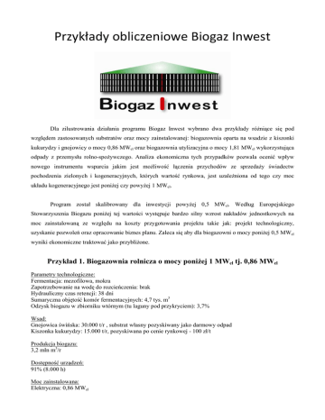 Przykady obliczeniowe Biogaz Inwest_gnojowica+kiszonka