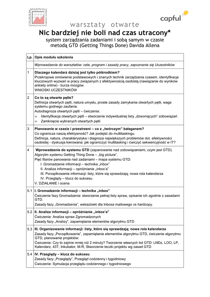 Wprowadzenie do systemu GTD (zapanowanie nad zobowiązaniami, czym jest GTD).