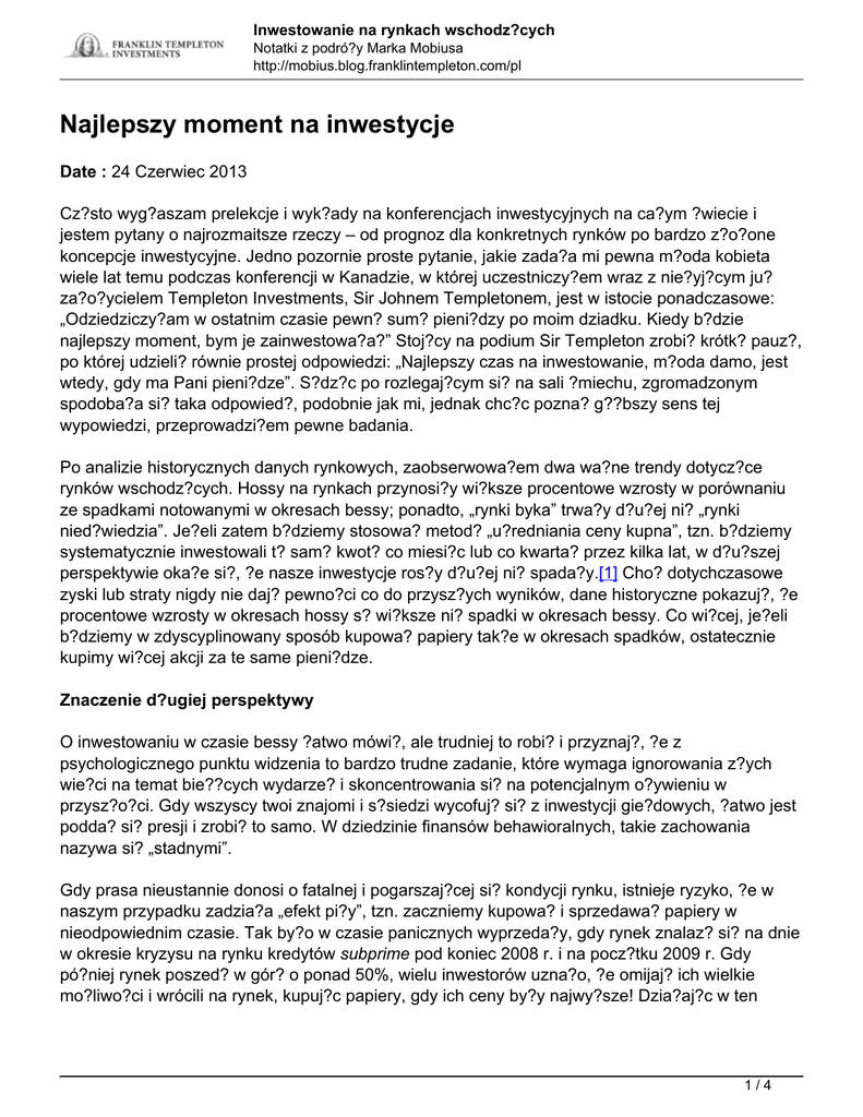 Najlepszy moment na inwestycje - Franklin Templeton Investments