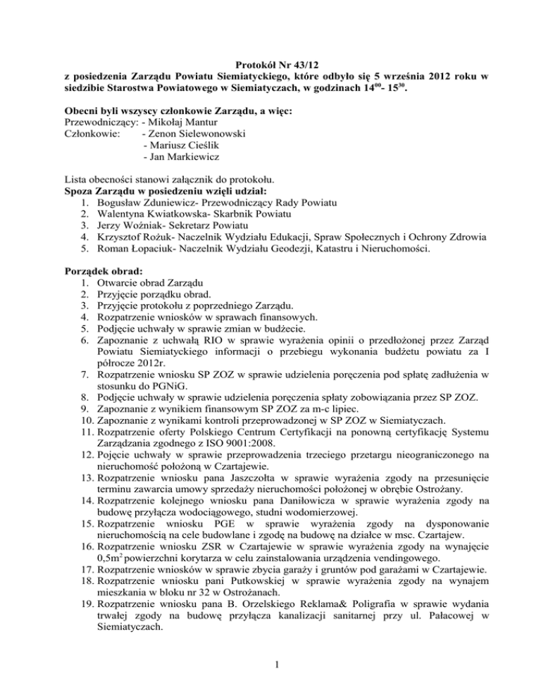 Protokół Nr 43/12 - Starostwo Powiatowe w Siemiatyczach
