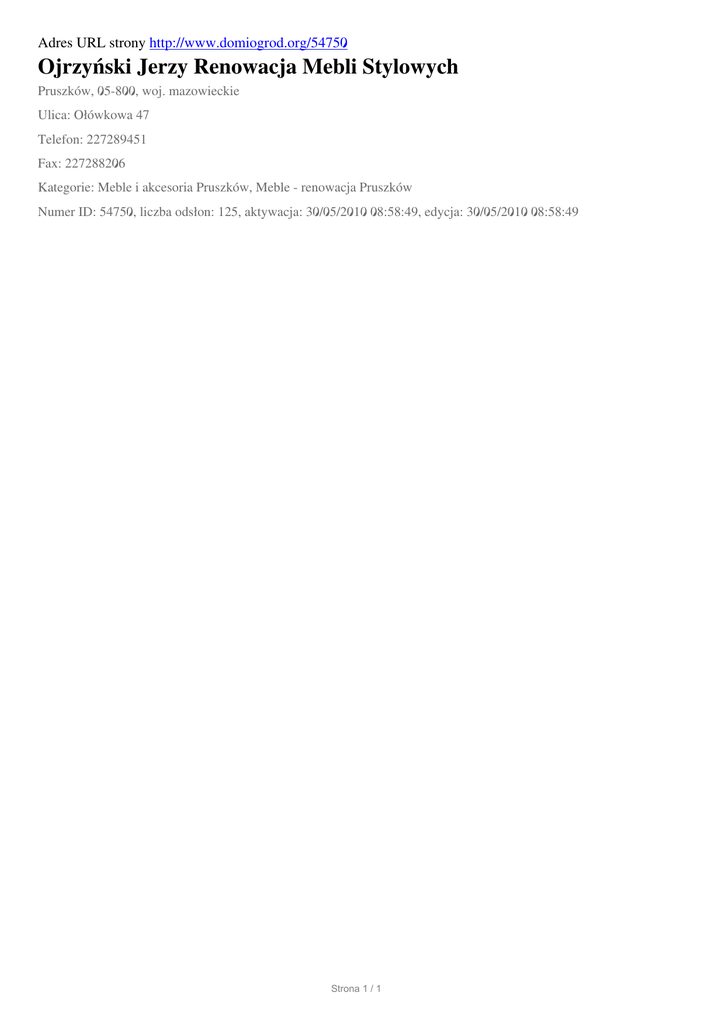 Ojrzynski Jerzy Renowacja Mebli Stylowych, Pruszkow, Olowkowa 47