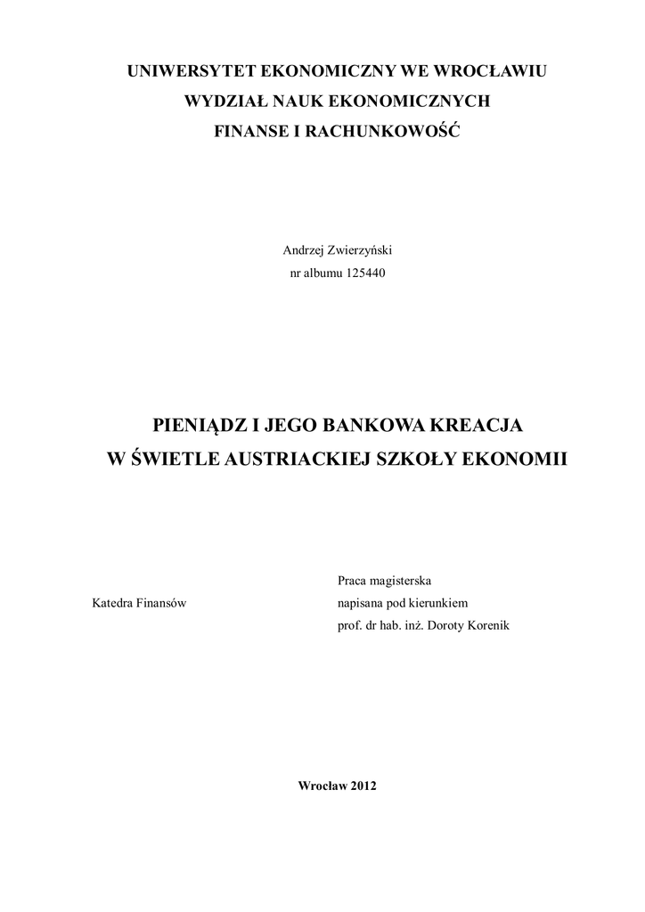 PIENIĄDZ I JEGO BANKOWA KREACJA W ŚWIETLE
