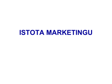 ISTOTA MARKETINGU ISTOTA MARKETINGU - DEFINICJE (1) MARKETING - to proces kreowania wartości na rynku Klient kupuje to co stanowi dla niego wartość. Marketing ma stworzyć takie wartości (np. renomę marki, ułatwianie zakupów, emocjonalne związki z dostawcą), które spowodują wybór naszego produktu (marki) przed konkurencyjnymi. Wartość rynkową tworzy się na każdym etapie powstawania produktu i jego sprzedaży. Koncepcja marketingu zaleca podporządkowanie wszystkich działań rynkowych firmy strategii rynkowej. ISTOTA MARKETINGU - DEFINICJE (2) MARKETING - to koncepcja zarządzania nakazująca podejmowanie wszelkich decyzji w przedsiębiorstwie pod kątem skuteczności rynkowej Kategoriami wyjściowymi są: po stronie nabywców potrzeby a po stronie przedsiębiorcy - zasoby. - Dzięki rynkowemu podejściu można kapitał ulokować tak, by przyniósł jak największe korzyści. Aby tak się stało zacząć trzeba od badań marketingowych i dalej przestrzegać zasad zarządzania marketingowego. Marketing zaleca aktywne podejście do rynku, tzn. nie tylko dostosowanie się do wymogów danego segmentu rynku (nabywców), ale również wpływanie nań i tworzenie potrzeb. ISTOTA MARKETINGU - DEFINICJE (3) MARKETING - to także zespół działań dostosowujących podaż do potrzeb nabywcy oraz wpływających na nabywcę, by dostosować jego potrzeby do interesów firmy. Są to elementy marketingu Kompozycja elementów marketingu dostosowana do sytuacji rynkowej tworzy tzw. marketing mix. Działania te (elementy marketing mix) nie mogą być zbiorem przypadkowych czynności, lecz powinny przyczyniać się do kreowania i utrzymywania wartości marki firmy (renomy) i jej pozycji na rynku. Nie wystarczy odpowiedni marketing-mix, potrzebna jest orientacja rynkowa firmy. KONCEPCJA MARKETINGU zakłada, że firma przetrwa na rynku tylko wtedy, gdy zaspokoi potrzeby swoich klientów skuteczniej niż jej konkurenci. Oznacza to, że klient jest centralnym i wyjściowym punktem każdego przedsięwzięcia. Trzy kluczowe pytania brzmią: kto jest potencjalnym klientem? jakie ma potrzeby? czy my potrafimy te potrzeby zaspokoić lepiej niż nasi konkurenci? ZASADY RYNKOWE 1. PRODUKCJA JEST PROCESEM ZASPOKAJANIA POTRZEB, A NIE WYTWÓRSTWEM TOWARÓW. 2. PRODUKCJA WINNA BYĆ DOSTOSOWANA DO POTRZEB ŚCIŚLE OKREŚLONEGO NABYWCY (S E G M E N T U). PRZECIĘTNY NABYWCA NIE ISTNIEJE. 3. NA RYNKU NASYCONYM NIE WYSTARCZY BIERNIE DOSTOSOWAĆ SIĘ DO POTRZEB. TRZEBA AKTYWNIE ODDZIAŁYWAĆ NA RYNEK, W CELU KSZTAŁTOWANIA GO ZGODNIE Z WŁASNYMI INTERESAMI ZASADY RYNKOWE (2) 4. KONKURENTEM JEST KAŻDY, KTO ZASPOKAJA TE SAME POTRZEBY, KTO WALCZY O TE SAME PIENIĄDZE. NIE TYLKO TEN, KTO PRODUKUJE PODOBNY TOWAR 5. WSZYSTKIE DZIAŁANIA NALEŻY PODPORZĄDKOWAĆ DŁUGOFALOWEJ STRATEGII MARKETINGOWEJ OPARTEJ O ZNAJOMOŚĆ SYTUACJI RYNKOWEJ I WŁASNE MOCNE STRONY CO SIĘ LICZY W MARKETINGU? • Identyfikacja potrzeb klienta • Identyfikacja konkurentów • Określenie własnych przewag konkurencyjnych • Dobór optymalnych strategii marketingowych • Kreatywność • Aktywne tworzenie potrzeb • Zaspokajanie potrzeb = sprzedaż korzyści = satysfakcja klienta • Tworzenie lojalności klienta • Indywidualizacja kontaktu z klientem • Tworzenie pozytywnego wizerunku marki • Tworzenie wartości marki • Partnerstwo, alianse ORIENTACJE MARKETINGOWE 1. ORIENTACJA PRODUKCYJNA – KONSUMENCI PREFERUJĄ PRODUKTY ŁATWO DOSTĘPNE, NIEDROGIE, MASOWE. NAJWAŻNIEJSZA W FIRMIE JEST DOBRA ORGANIZACJA I WYDAJNOŚĆ , NP. ELEKTROWNIA 2. ORIENTACJA PRODUKTOWA – KONSUMENT PREFERUJE PRODUKT OFERUJĄCY MAKSYMALNĄ JAKOŚĆ, KORZYŚCI, FIRMA ULEPSZA PRODUKT, 3. ORIENTACJA SPRZEDAŻOWA – OPARTA NA DZIAŁANIACH PROMOCYJNYCH NA WIELKĄ SKALĘ ABY ZACHĘCIĆ KLIENTÓW DO ZAKUPU, WYNIKI SĄ KRÓTKOTRWAŁE , BRAK BUDOWANIA RELACJI Z KLIENTEM, 4.OREINTACJA MARKETINGOWA – PODSTAWOWYM CELEM JEST OKREŚLENIE POTRZEB I PRAGNIEŃ RYNKU DOCELOWEGO ORAZ BUDOWANIE RELACJI Z KLIENTEM, WIĘKSZA SKUTECZNOŚĆ NIŻ U KONKURENCJI. OTOCZENIE RYNKOWE PRZEDSIĘBIORSTWA M AKROOTOCZENIE: SPOŁECZNO-POLITYCZNE S P OŁECZNO-P OLITYCZNE FI RM A KONKURENCI Ś RODKMASOWEGO I MAS OWEGOPRZEKAZU P RZEKAZU ŚRODKI TECHNOLOGICZNE TECHNOLOGICZNE GOSPODARCZE WŁADZE NABYWCY ORGANIZACJE ORGANIZACJ E BBRANŻOWE RANŻOWE POŚREDNICY DOSTAWCY BANKI KULTUROWE MI KROOTOCZENIE: ELEMENTY MARKETINGU BADANIA KSZTAŁTOWANIE KOMUNIKACJA MARKETINGOWA SPRZEDAŻ MARKETINGOWE PRODUKTU Kierunki inwestowania Public relations Segmentacja rynku Rodzaj, gatunek, parametry Reklama Cena produktu (usługi) Akwizycja Ilość, wersje Technologie Bezpośrednie wspieranie sprzedaży (b.w.s.) Warunki sprzedaży Warunki produkcji (sales promotion) Merchandising Komunikacja nieformalna dostosowywanie produktu do aktualnych analizowanie informacji i przyszłych potrzeb rynkowych, niezbędnych określonego segmentu rynku, zgodnie ze do podejmowania strategią rynkową firmy. gromadzenie i skutecznych decyzji. Badanie rynku Badanie produktu Badanie promocji Badanie zbytu działania informacyjne wspieraniehandlowe oferty firmy. realizujące na Oddziaływanie na rynek rynku wytwow celu pozytywnego rzone dobro. nastawienia jego uczestników do firmy Realizacja celu firmy w sferze nadawcy i jej oferty. obrotu. Kanały zbytu (pośrednicy) ELEMENTY MARKETING-MIX - 7P PRODUCT - produkt, usługa, zakres oferty (np. jakość produktu, szerokość i głębokość oferty) PRICE - cena (w tym warunki płatności) PLACE - dystrybucja, metody sprzedaży (np. dobór pośredników, lokalizacja punktów obsługi klienta, sprzedaż internetowa) PROMOTION - komunikacja marketingowa (np. reklama, PR, sales promotion, sponsoring, komunikacja nieformalna) ELEMENTY MARKETING-MIX - 7 P (C.D.) PEOPLE - zachowania pracowników (np. sposób zdobywania i obsługi klienta, biznesowy savoir-vivre, tworzenie wizerunku marki przez pracowników) PROCEDURES - procedury obsługi klienta (np. załatwiania reklamacji, elasty