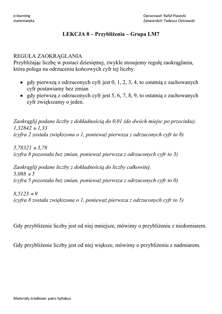 LEKCJA 8 – Przybliżenia - LOGIM.EDU.GORZOW.PL :: Strona Główna