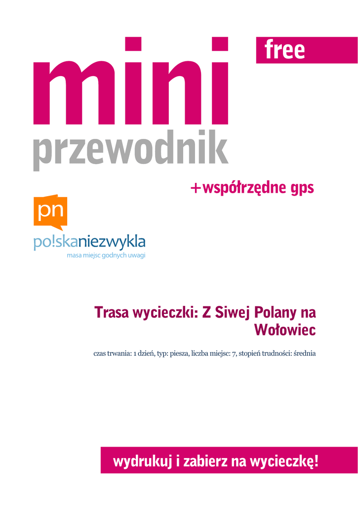 Trasa wycieczki: Z Siwej Polany na Wołowiec czas trwania: 1 dzień, typ: piesza, liczba miejsc: 7, stopień trudności: średnia Opis wycieczki Trasa, którą zamierzamy przebyć prowadzi na pierwszy od strony zachodniej szczyt polskich Tatr, jeden z najłatwiejszych do zdobycia dwutysięczników. Rozpoczynamy na Siwej Polanie, gdzie zielonym szlakiem musimy dotrzeć do Doliny Chochołowskiej. Najłatwiejszym sposobem jest skorzystanie z kolejki. Szybko i tanio. Dojedziemy do Polany Huciska. Dalej już własne nogi. Ruszamy w kierunku Polany Chochołowskiej. Zajmie nam to około godziny marszu. Po prawej stronie znajduje się kapliczka św. Jana Chrzciciela znana z serialu "Janosik", w której główny bohater brał ślub z Maryną. Na polanie znajdują się piękne zabytkowe szałasy. Idziemy dalej i dochodzimy do schroniska. W czerwcu 1983 roku przebywał w nim papież Jan Paweł II. Warto się tam posilić, by wyruszyć w dalszą drogę. Ze schroniska ruszamy w górę, żółtym szlakiem w kierunku Grzesia. Przechodzimy przez Przełęcz Bobrowiecką i po około 1 godz. 30 min. powinniśmy dotrzeć do szczytu na wysokości 1653 m n.p.m. Dalej już tzw. Długim Upłazem, szlakiem niebieskim kierujemy się w stronę Wołowca. Po drodze przechodzimy przez drugi szczyt Rakoń (1879 m n.p.m.). Z Grzesia na Wołowiec powinniśmy dotrzeć w niecałe 2 godziny. Widoki ze szczytu Wołowca (2064 m n.p.m.) są wspaniałe. Wymienię tylko pobliskie zbocza Rohaczy na zachodzie oraz Dolinę Jamnicką ze swoimi stawami na południu. Czeka nas na pewno wspaniała i niepowtarzalna sesja fotograficzna. Oczywiście zakładając, że trafiliśmy na piękną pogodę. Po krótkim odpoczynku i naładowaniu aparatu zdjęciami schodzimy tym samym niebieskim szlakiem około 20 min. do skrzyżowania ze szlakiem zielonym. Wchodzimy na ten szlak i Wyżnią Doliną Chochołowską w 1,40 h schodzimy już tylko w dół do Polany Chochołowskiej. Teraz wybieramy inny rodzaj transportu i na wypożyczonym rowerze, za odpowiednią opłatą zjeżdżamy aż do Siwej Polany. Program wycieczki 2 Zakopane Pamiątka z odwiedzin – Siwa Polana 23 czerwca 1983 roku na Siwej Polanie lądował helikopter, na którego pokładzie znajdował się Jan Paweł II. Papież podczas drugiej pielgrzymki do Polski odwiedził Dolinę Chochołowską. W 20. rocznicę, na pamiątkę tego wydarzenia, w miejscu lądowania helikoptera postawiono krzyż wbity w kamień, a na nim pamiątkową tablicę. 49°16'39"N 19°50'05"E | na mapie:A Witów Dolina Chochołowska Długa na 8,5 kilometra Dolina Chochołowska, jest największą i najdalej na zachód wysuniętą doliną Tatr Polskich. Jest to dolina walna - biegnie od podnóża gór do głównej grani. Na Siwej Polanie stoi kilka szałasów pasterskich oraz krzyż papieski, upamiętniający miejsce, w którym w 1983 r. wylądował śmigłowiec z Janem Pawłem II na pokładzie. Do tego miejsca można dojechać samochodem, choć asfaltowa droga dochodzi aż do Polany Huciska. Dolina Chochołowska Kapliczka Maryny i Janosika Każdy, kto zna kultowy serial "Janosik", pamięta sceny ze ślubu Harnasia z Maryną, który miał miejsce w Dolinie Chochołowskiej. W czasie realizacji serialu zbudowano na Polanie Chochołowskiej, pod lasem, kapliczkę. Miniaturowy, drewniany kościółek kryty czarnym gontem pozostawiono jako atrakcję polany. Z czasem wyposażono jego wnętrze oraz poświęcono. Dzisiaj w kaplicy pw. św. Jana Chrzciciela odbywają się w sezonie letnim msze św. Szczególną atrakcją dla odwiedzających dolinę są udzielane w niej śluby. Dalej dolinę pokonuje się kolejką, pieszo, rowerem, dorożką lub saniami, mijając zwężenia doliny, tzw. Niżnią i Wyżnią Bramę Chochołowską, wylot Szczeliny Chochołowskiej. Za kolejną Polaną Trzydniówką brukowana droga prowadzi na Polanę Chochołowską, otoczoną szczytami: od Bobrowca do Rakonia, od Wołowca do Kończystej oraz Czubik i Trzydniowiański Wierch. Droga prowadzi do schroniska z 1953 r., gdzie odbyło się spotkanie Jana Pawła II z Lechem Wałęsą (1983). 49°13'38"N 19°47'05"E | na mapie:C 49°14'19"N 19°47'32"E | na mapie:B 3 Zakopane Schronisko PTTK na Polanie Chochołowskiej Schronisko położone jest na wysokości 1 146 m n.p.m. na Polanie Chochołowskiej. Miejsce na budowę schroniska wybrano w 1928 roku, a oficjalne otwarcie miało miejsce w 1932 roku. Budynek spłonął niedługo przed zakończeniem II wojny światowej. Oddziały niemieckie, nacierające na partyzantów ukrytych w Dolinie Chochołowskiej, niszczyli wszystko, co napotkali na swojej drodze. Spalonych wówczas zostało kilka szałasów pasterskich i schronisko górskie. Budynek stojący obecnie rozpoczęto budować w 1951 roku, do użytku oddane zostało dwa lata później. Projekt schroniska wykonała Anna Górska inspirowana motywami regionalnymi, góralskimi. 23 czerwca 1983 roku schronisko odwiedził papież Jan Paweł II. Wydarzenie to upamiętnia tablica zawieszona przy wejściu do schroniska. Trasę, jaką przebył papież, nazwano Szlakiem Jana Pawła II. Schronisko posiada 121 miejsc noclegowych. Latem organizowane są wycieczki z przewodnikiem, wycieczki na rowerach górskich, kursy wspinaczkowe, przejazdy dorożką, koncerty kapel regionalnych. Zimą natomiast wycieczki narciarskie z przewodnikiem i kuligi. Witów Grześ Grześ to szczyt w Tatrach Zachodnich o wysokości 1653 m n.p.m. Prowadzi na niego żółty szlak z Polany Chochołowskiej. Na szczycie znajduje się drewniany krzyż postawiony przez Słowaków dla upamiętnienia czasów, kiedy w latach 70. i 80. XX wieku przez Grzesia przemycana była literatura religijna. Z Grzesia rozciąga się wspaniały widok na stronę słowacką. Geograficznie należy do grzbietu Długiego Upłazu, który jest bałtycko-pomorskim wododziałem - ma to ogromne znaczenie dla okolicznych rzek; wszystkie rzeki po stronie słowackiej wpadają bowiem do Morza Czarnego, a po stronie polskiej do Bałty
