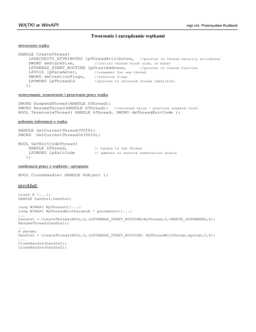 wstrzymanie, wznowienie i przerwanie pracy wątku