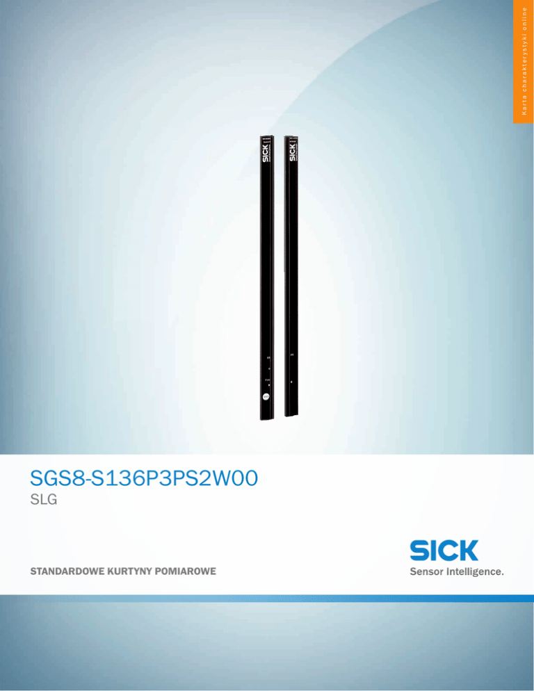 Karta charakterystyki online SGS8-S136P3PS2W00 SLG STANDARDOWE KURTYNY POMIAROWE SGS8-S136P3PS2W00 | SLG STANDARDOWE KURTYNY POMIAROWE A B C D E F Informacje do zamówienia Typ Nr artykułu SGS8-S136P3PS2W00 więcej wersji urządzeń i akcesoriów 1047161 www.sick.com/SLG Szczegółowe dane techniczne Cechy H I J K L M N O P Q R S T Technologia Nadajnik/odbiornik Najmniejszy wykrywalny obiekt (MDO) Wiązka równoległa, 85 mm Odstęp miedzy wiązkami 80 mm Optyczny wylot światła Slim Liczba wiązek 18 Wysokość pola detekcji 1.360 mm Parametryzacja Bez przycisku uczenia Teach-in i z oprogramowaniem do parametryzacji Wiązka krzyżowa/wiązka równoległa Wiązka równoległa aktywna Wyjście 1 Wyjście 1 aktywne w przypadku przerwania optycznej drogi światła Automatyczna funkcja uczenia Automatyczne programowanie metodą uczenia nieaktywne Wskaźnik wzajemnego położenia Bez wskaźnika wzajemnego położenia Funkcja mutingu Funkcja mutingu nieaktywna Wydajność Zasięg maksymalny 4 m 1) Zasięg minimalny Wiązka równoległa: ≥ 0 mm 2) Zasięg roboczy 3 m Czas odpowiedzi Wiązka równoległa, 19 ms 1) 2) Brak rezerwy dla czynników zewnętrznych i starzenia się diody. Kąt rozwarcia ± 10°. Interfejsy Wyjście przełączające 1 x PNP Wejścia Wejście Teach-in Typ przyłącza Przewód z 4-biegunowym wtykiem M8 2 KURTYNY POMIAROWE | SICK Karta charakterystyki online | 2017-01-24 13:54:28 Informacje mogą ulec zmianie bez powiadomienia SGS8-S136P3PS2W00 | SLG STANDARDOWE KURTYNY POMIAROWE Mechanika/elektryka Długość fali Światło podczerwone, 950 nm Napięcie zasilające Uv DC24 V, ± 20 % 1) Pobór prądu, nadajnik ≤ 130 mA 2) Pobór prądu, odbiornik ≤ 70 mA Tętnienia resztkowe < 5 Vss Prąd wyjściowy Imaks. 100 mA Obciążenie wyjściowe, pojemnościowe 100 nF Obciążenie wyjściowe, indukcyjne 1 H Czas inicjalizacji 1 s Wymiary (szer. x wys. x głęb.) 25 mm x 1.432,4 mm x 8 mm Materiał obudowy PMMA Wskazanie LED Synchronizacja Optyczna Stopień ochrony IP 65 Układy zabezpieczające Przyłącza UV z zabezpieczeniem przed zmianą polaryzacji, Wyjście Q chronione przed zwarciem, Tłumienie impulsów zakłócających Masa 180 g Częstotliwość przełączania 500 kHz Stabilizator aluminiowy Ze stabilizatorem 1) 2) Wartości graniczne. , bez obciążenia. Dane dotyczące otoczenia Klasa ochrony III EMC EN 60947-5-2 Temperatura otoczenia podczas pracy –25 °C +55 °C Temperatura otoczenia – przechowywanie –25 °C +70 °C Odporność na światło zewnętrzne Bezpośrednie: 100.000 lx 1) Pośrednie: 150.000 lx Odporność na drgania 5 g, 10 Hz ... 55 Hz (IEC 68-2-6) Odporność na udary 10 g / DIN EN 60068-2-29 / 16 ms 1) Światło słoneczne. Klasyfikacje ECl@ss 5.0 27270910 ECl@ss 5.1.4 27270910 ECl@ss 6.0 27270910 ECl@ss 6.2 27270910 ECl@ss 7.0 27270910 ECl@ss 8.0 27270910 ECl@ss 8.1 27270910 ECl@ss 9.0 27270910 2017-01-24 13:54:28 | Karta charakterystyki online Informacje mogą ulec zmianie bez powiadomienia KURTYNY POMIAROWE | SICK 3 SGS8-S136P3PS2W00 | SLG STANDARDOWE KURTYNY POMIAROWE ETIM 5.0 EC002549 ETIM 6.0 EC002549 UNSPSC 16.0901 39121528 Rysunek wymiarowy (Wymiary w mm) Sxx-Sxxxxxxx2xxx Slim, with stabilizer Sender 10 36.5 (1.44) 6.4 Sender (0.25) 7 2 3 DH = (n x RM) – RM L = DH + RM + 35.5 (1.40) 8 4 5 1 18.5 7 (0.15) Ø 3.8 (0.73) 45.8 (1.80) 1.4 (0.06) x 45° 99 (3.90) H I J K L M N O P Q R S T 12.4 (0.49) (0.39) Receiver RM A B C D E F 6 ① Pierwsza wiązka ② Ostatnia wiązka ③ Odstęp między wiązkami (RM) ④ Liczba wiązek (n) ⑤ Wysokość pola detekcji ⑥ Przyłącze ⑦ Odległość jest jednakowa ⑧ Patrz tabela (odległości między otworami stabilizatora) 4 KURTYNY POMIAROWE | SICK Karta charakterystyki online | 2017-01-24 13:54:28 Informacje mogą ulec zmianie bez powiadomienia SGS8-S136P3PS2W00 | SLG STANDARDOWE KURTYNY POMIAROWE Możliwości ustawiania SAS, SGS, odbiornik, wskaźnik LED ON Q/Q Func 1 2 TEACH 3 constantly shining out ① Napięcie zasilające ② Aktywny, gdy przycisk uczenia jest naciśnięty ③ Droga optyczna światła wolna Typ przyłącza i schemat połączeń SGS Sender Receiver PNP/NPN 1 2 3 4 L+ Test M NC 1 2 3 4 2017-01-24 13:54:28 | Karta charakterystyki online Informacje mogą ulec zmianie bez powiadomienia Receiver 2 x PNP/2 x NPN L+ Teach M Q1 1 2 3 4 L+ Q2 M Q1 KURTYNY POMIAROWE | SICK 5 SGS8-S136P3PS2W00 | SLG STANDARDOWE KURTYNY POMIAROWE A B C D E F Koncepcja obsługi SAS, SGS, SPL Optical synchronization The light grid communicates via the light beams. A cable is not necessary for the optical synchronization. Tryb konfiguracji If the teach button is pressed longer than 5 s, you switch into the configuration mode. In the configuration mode the menu items are indicated by the green LEDs. If the teach button is then pressed for < 1 s, the respective function is activated or reset (yellow LED on or off). If the teach button is pressed for 1 s to 5 s long, you switch to the next menu item. To exit the configuration mode, press the teach button for > 5 s or wait for 30 s. H I J K L M N O P Q R S T 1. Light grid in RUN mode, green LED “ON” illuminates, yellow LED “Q” illuminates. 2. Cross or parallel beam set up. 1) 3. Go to the next menu item. 4. Exit the configuration mode. 3 1 2 3 ON Q 1 2 3 1 ON <1s 3 Func ON >5s Press teach button > 5 s. The light grid switches into the configuration mode – menu item “cross beam/parallel beam”. The first green LED from top flashes. 1) 1 2 Q 2 1 s ... 5 s 3 >5s oder ON Q Q 1 2 1 = Yellow LED on, “Crossed beam” active. 2 = Yellow LED off, “Parallel beam” active. 4 > 30 s 1 2 3 ON Q 3 = Press teach button > 5 s, save parameters. 4 = Wait > 30 s, parameters not saved. Press teach button for 1 s to 5 s to switch to the next menu item (in this case “alignment aid”). Press teach button < 1 s to switch between the settings. Configure the light grid in a 3-way cross-beam or a parallel-oriented operating principle. The cross beam can be used