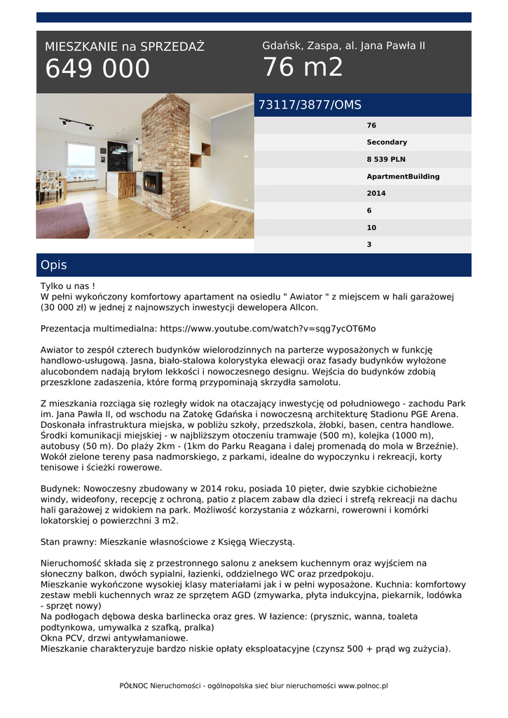 Wydruk oferty PDF - PÓŁNOC Nieruchomości
