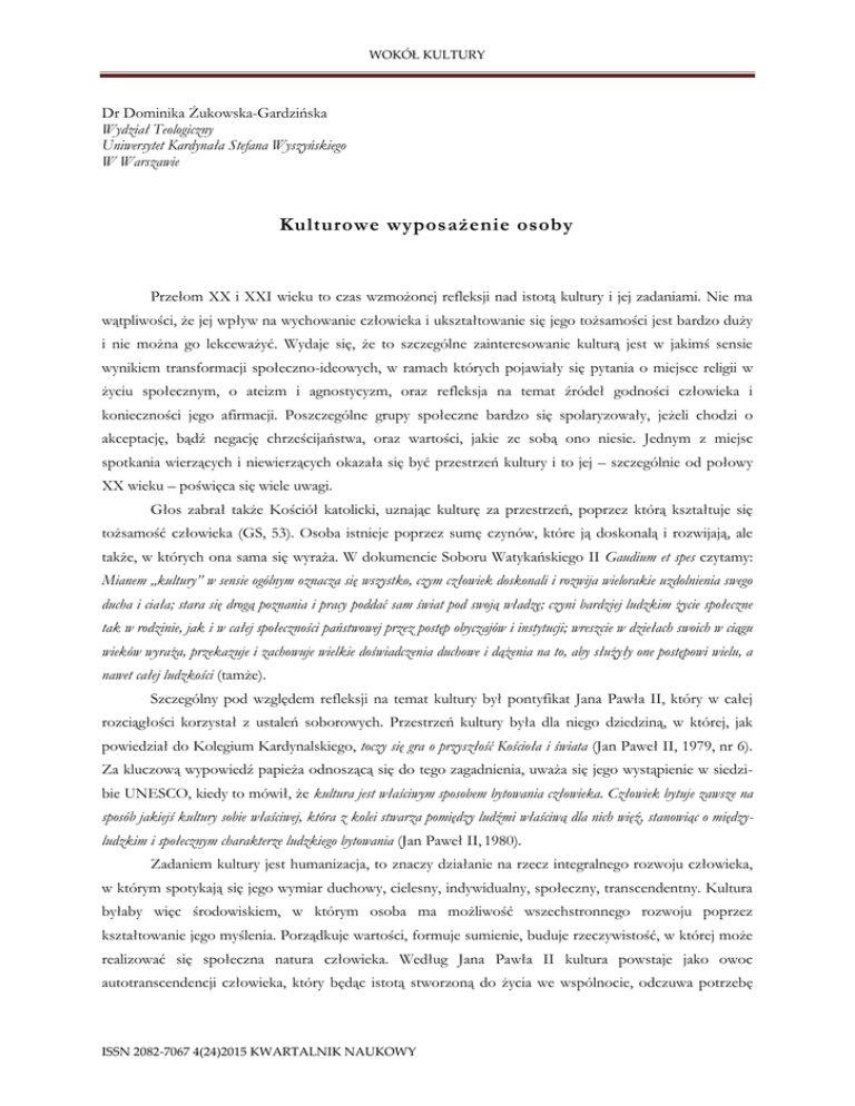 Kulturowe wyposażenie osoby - Stowarzyszenie Fides Et Ratio