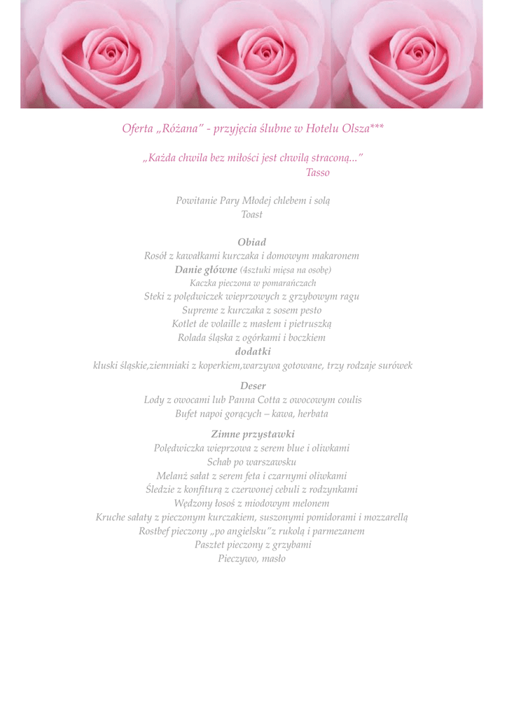 Oferta ślubna Różana – Pobierz ofertę w pdf