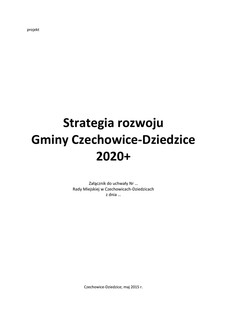 projekt Strategia rozwoju Gminy Czechowice-Dziedzice 2020+ Załącznik do uchwały Nr … Rady Miejskiej w Czechowicach-Dziedzicach z dnia … Czechowice-Dziedzice; maj 2015 r. Strategia Rozwoju Gminy Czechowice-Dziedzice 2020+ Spis treści Wprowadzenie ........................................................................................................................................ 3 Misja i wizja ............................................................................................................................................. 4 Cele i kierunki działań .............................................................................................................................. 6 Wdrażanie i ewaluacja........................................................................................................................... 10 Konsultacje społeczne ........................................................................................................................... 11 Załączniki ............................................................................................................................................... 13 Strona 2 Strategia Rozwoju Gminy Czechowice-Dziedzice 2020+ Wprowadzenie Planowanie rozwoju gminy jest działaniem porządkującym bieżące i zakładane przedsięwzięcia samorządu w taki sposób, aby w dłuższej perspektywie czasowej osiągnąć w sposób optymalny zamierzone efekty. Powszechnie akceptowana wizja gminy jest wyrazem porozumienia mieszkańców, lokalnych władz, liderów i organizacji. Zarysowane w strategii cele i kierunki działań powinny zaś być punktem oparcia dla decyzji bieżących, szczególnie tych związanych z wydatkowaniem publicznych środków. Przekonująco zarysowana wizja rozwoju ułatwi także ubieganie się przez Gminę CzechowiceDziedzice i inne działające tu podmioty o wsparcie finansowe ich działań ze źródeł zewnętrznych. W niniejszej strategii założono horyzont planistyczny obejmujący okres programowania Unii Europejskiej przypadający na lata 2014-2020. Wizja rozwoju Gminy Czechowice-Dziedzice, zarysowana jako cel nadrzędny, jest spojrzeniem poza ten horyzont i sięga trzeciej dekady bieżącego stulecia, co znajduje swoje odzwierciedlenie w tytule dokumentu. Strona 3 Strategia Rozwoju Gminy Czechowice-Dziedzice 2020+ Misja i wizja Misja jest nadrzędnym celem rozwoju Gminy, wyrażonym w sposób syntetyczny. Obejmuje ona sens działania organizacji, jaką jest Gmina. Misja Gminy Czechowice-Dziedzice została ujęta w sposób następujący: Gmina Czechowice-Dziedzice przyjazna mieszkańcom, promująca ich aktywność i troszcząca się o ich bezpieczeństwo oraz dbająca o rozwój miejscowego przemysłu i przedsiębiorczości realizowany w zgodzie ze środowiskiem naturalnym. W komunikacji z otoczeniem znajduje zastosowanie uproszczona postać misji: Czechowice-Dziedzice - przyjazne miejsce dla aktywnych i przedsiębiorczych ludzi. Realizacja przyjętej misji powinna przyczynić się do urzeczywistnienia wskazanej poniżej wizji Gminy Czechowice-Dziedzice: W trzeciej dekadzie XXI w. Gmina Czechowice-Dziedzice jest istotnym ośrodkiem rozwoju w skali regionu, a współtworząc z Bielskiem-Białą aglomerację bielską stanowi najsilniejszy ośrodek w subregionie południowym województwa śląskiego. Czechowice-Dziedzice są miejscem rozwiniętego, nowoczesnego, nieuciążliwego dla środowiska przemysłu. Cechą wielu działających tu przedsiębiorców jest wysoka zdolność współpracy sieciowej i kooperacji, a także wysoki stopień innowacyjności stosowanych rozwiązań. Duże firmy produkcyjne zlokalizowane są głównie we wschodniej części miasta w pasie wzdłuż rzeki Biała. Tereny te są w sposób nieuciążliwy dla mieszkańców skomunikowane z głównymi trasami drogowymi i kolejowymi przecinającymi obszar Gminy. Wzdłuż drogi krajowej nr 1 i obwodnicy przemysłowej miasta inwestują kolejne firmy produkcyjne. Bardzo dobrze rozwinięte na obszarze całej Gminy są sektory mikro, małych i średnich przedsiębiorstw, z których produktów i usług korzystają mieszkańcy Strona 4 Strategia Rozwoju Gminy Czechowice-Dziedzice 2020+ Gminy i regionu. Wybrane produkty są znane i cenione przez odbiorców i konsumentów krajowych i zagranicznych. Obok dobrze rozwiniętych usług komercyjnych społeczność Gminy Czechowice-Dziedzice korzysta z wysokiej jakości usług publicznych w sferach administracji, edukacji, kultury, ochrony zdrowia i pomocy społecznej. Na obszarze całej Gminy sprawnie funkcjonują systemy gospodarki wodnościekowej oraz gospodarki odpadami. Wykorzystanie odnawialnych źródeł energii staje się powszechnym standardem. Społeczność Gminy cechuje się poziomem aktywności społecznej nie mniejszym, niż w innych ośrodkach regionu. Dla pożytku publicznego działają liczne organizacje tworzone i zarządzane przez aktywnych członków lokalnej społeczności, którzy mogą liczyć na wsparcie samorządu i sektora gospodarczego. Współpraca ta przynosi korzyści wszystkim jej stronom. Mieszkańcy chętnie stosują współczesne technologie komunikacyjne do korzystania z szerokiego zakresu udostępnionych przez administrację i sektor gospodarczy e-usług. Zagospodarowanie przestrzenne Gminy ma charakter dychotomiczny. Wschodnią część Gminy stanowi miasto Czechowice-Dziedzice. Na zachód od drogi krajowej numer 1 rozciągają się obszary sołectw Bronów, Ligota i Zabrzeg, cechujące się postępującą suburbanizacją. Zjawisko to jest kontrolowane w taki sposób, aby nie dopuścić do ograniczenia wysokich walorów krajobrazu przyrodniczego Gminy oraz zminimalizować niebezpieczeństwa związane z zagrożeniem powodziowym. Obszary miejskie oraz obszary sołectw charakteryzuje spójność, która przejawia się funkcjonalną siecią dobrze utrzymanych dróg publicznych z wyodrębnionymi ciągami ruchu rowerowego i pieszego, estetycznym i komunikatyw