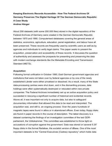 Keeping Electronic Records Accessible - How The Federal Archives Of